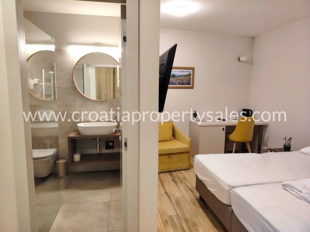 Commercial space in the city center near the Riva.It has a total of 93m2 of living area.It is currently renovated into three apartment units with a reception. Each room has its own bathroom.In essence, these are kitchen areas for preparing food and serving guests.It is located on the ground floor of a smaller house with a courtyard.There is no access by car, but all important facilities are within walking distance.