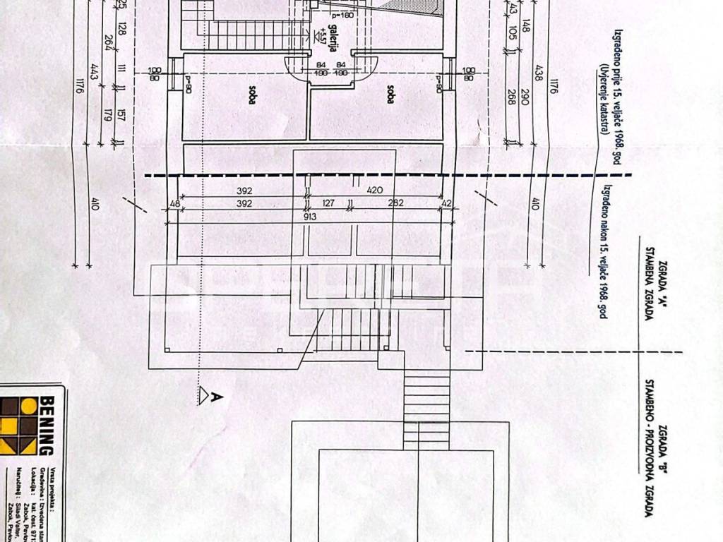 PRODAJA, KUĆA, ZABOK, Ulica Pavlovec Zabočki, 224 m2 stambenog dijela i 108,73 m2 pomoćne samostojeće građevine koja se sastoji od garaže u prizemlju, skladišnog prostora i velikog potkrovlja otvorenog koncepta. Kuća se sastoji od odvojenog životnog prostora u prizemlju (vlasnik davao u najam) i kata koji je vrlo atraktivan zbog visokog stropa i galerije koja vodi do dvije spavaće sobe. Ukupna veličina parcele je 881 m2 nadomak centru Zaboka (vrtić, škola, trgovina, bus, vlak, Tuheljske toplice).