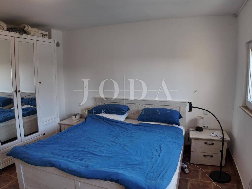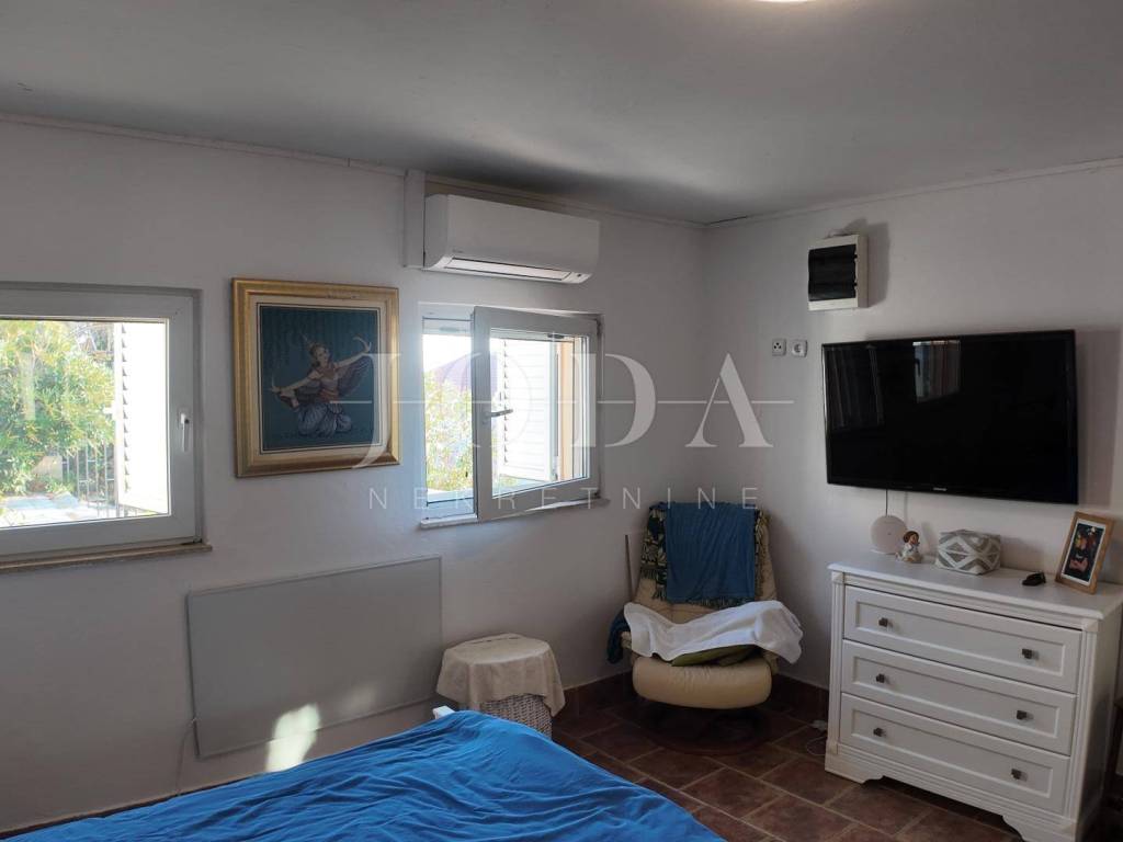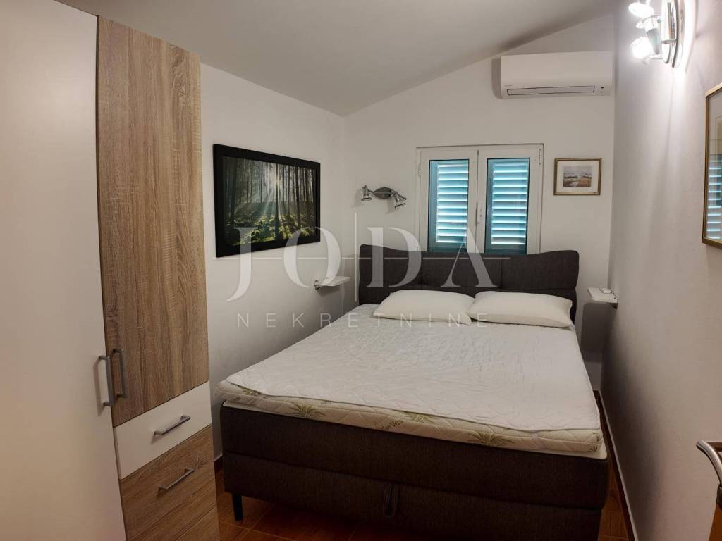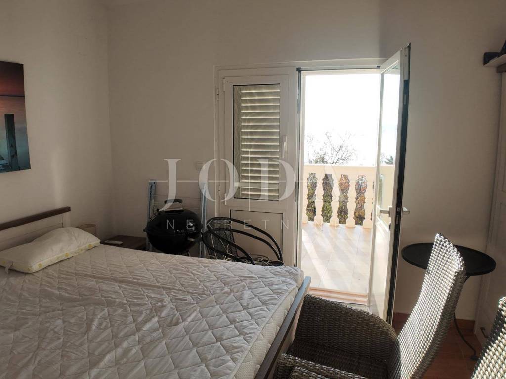 The upper floor is accessible by a covered external staircase and consists of a two-room apartment with a kitchen, living room and bathroom, and from the living room and one bedroom there is access to a spacious terrace with a beautiful view of the sea.