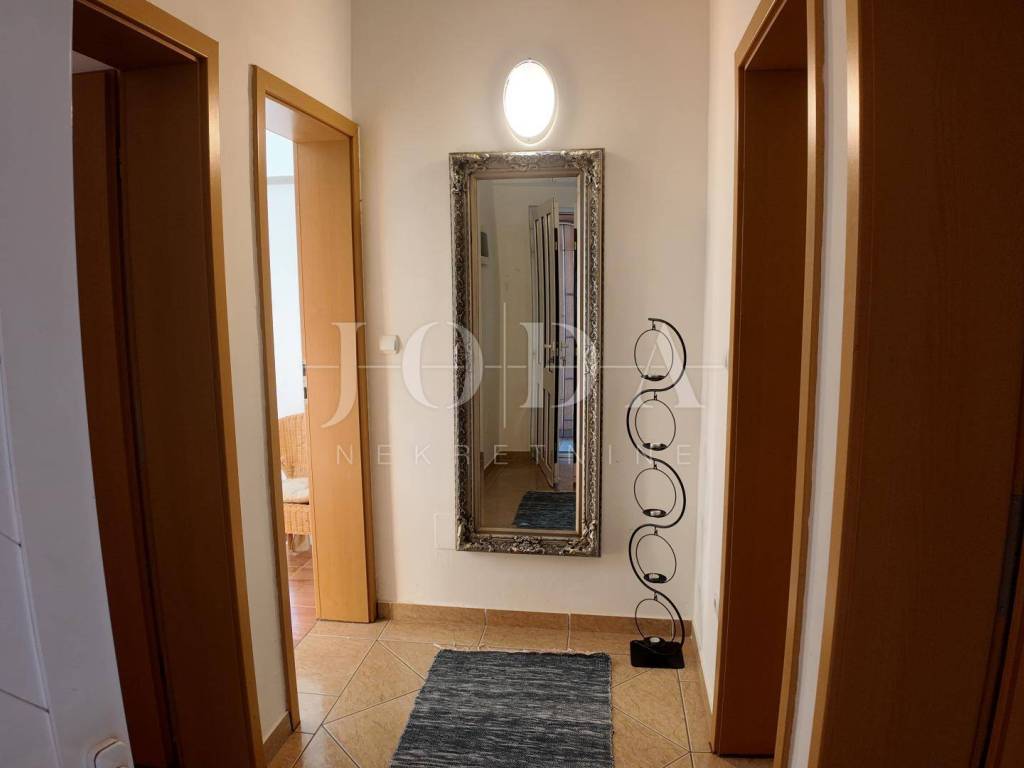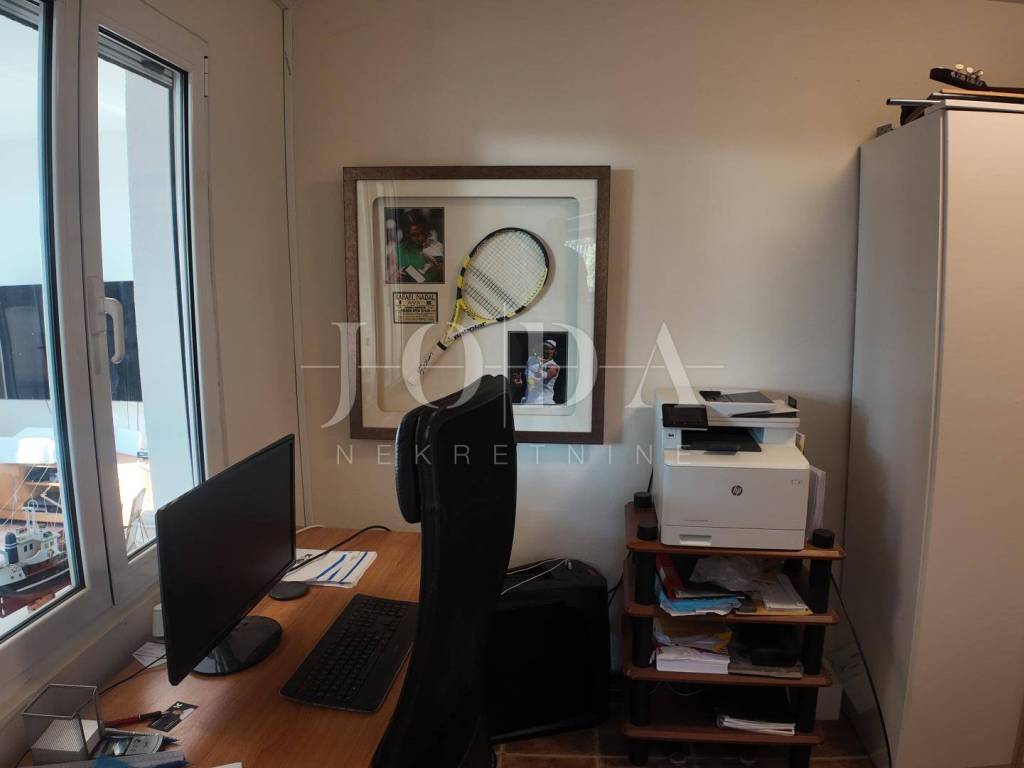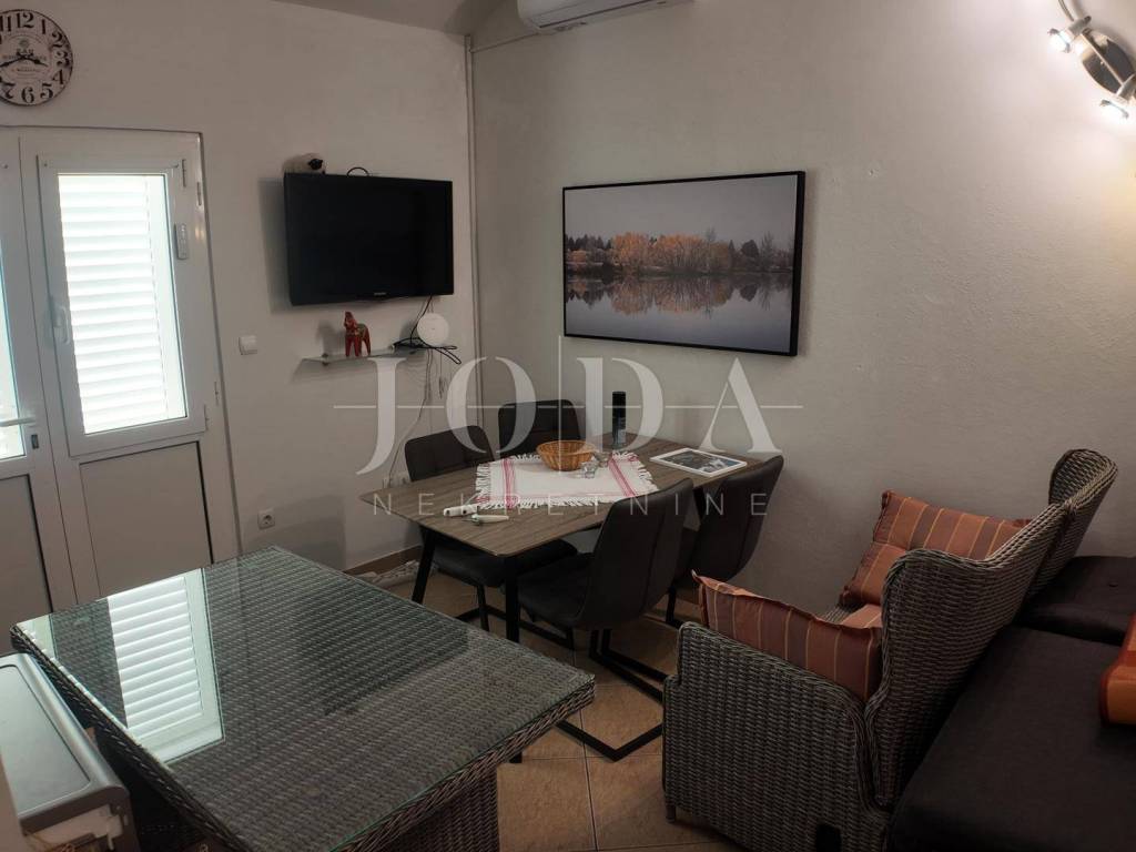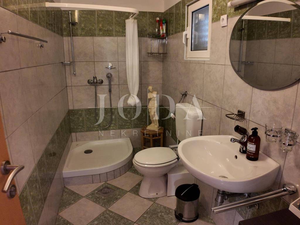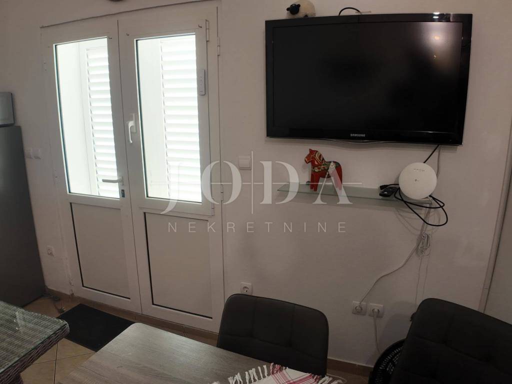The upper floor is accessible by a covered external staircase and consists of a two-room apartment with a kitchen, living room and bathroom, and from the living room and one bedroom there is access to a spacious terrace with a beautiful view of the sea.