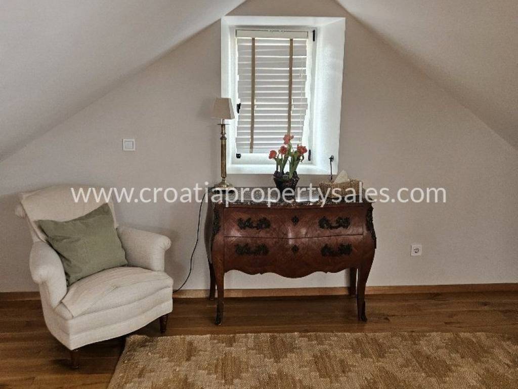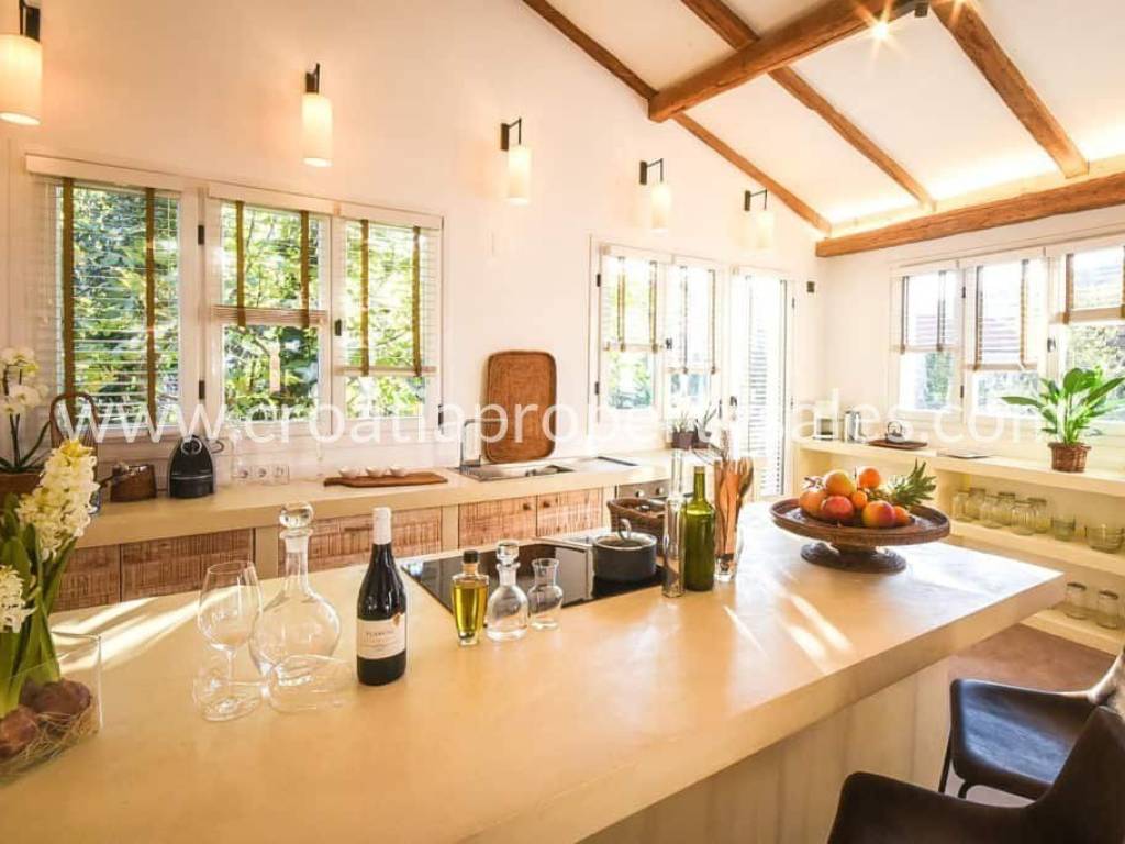 The old stone house complex was bought during a holiday in Croatia 2004, years of renovation have given rise to a completely renovated, bright and spacious old stone house of 240 m2.The property is located on the north side of the island in a quit village. The villa has 2 large indoor entertaining areas, comfortable for large families and groups of friends. Traditionally called the konoba, this room, with its high ceiling and old original wooden beams, was the cellar for the storage of wine barrels.It has been converted into a main living room with a stone fireplace and large patio doors opening onto a terrace with a fountain and close to the swimming pool (approx. 60 m2). Connected, but separate from the living room, is a comfortable desk with a sofa bed and with direct access to the garden.The other main entertainment room, located on the 1st floor (with air conditioning), consists of a large fully equipped open-plan kitchen and dining area for up to 10 guests (approx. 45 m2).High ceiling with wooden beams, it has its own access to a large terrace with a large bench seat, ideal for morning tea or coffee, a staircase leads directly to the garden and pool area. This floor also has a shower room.The Villa has 4 double bedrooms and an office with a sofa bed. 2 bedrooms are located on the first floor sharing the same bathroom. An en-suite bedroom with air conditioning is in the attic, one bedroom is on the ground floor, with patio doors opening onto the garden and sharing the bathroom with the office. The toilet is separate.The outside consists of a large garden with a gated entrance, a 9m x 4m swimming pool, different terraces to relax in the sun or shade, a large summer kitchen with barbecue, fridge and sink, large benches and pillows to enjoy the summer lifestyle and dine comfortably for up to 10 people.