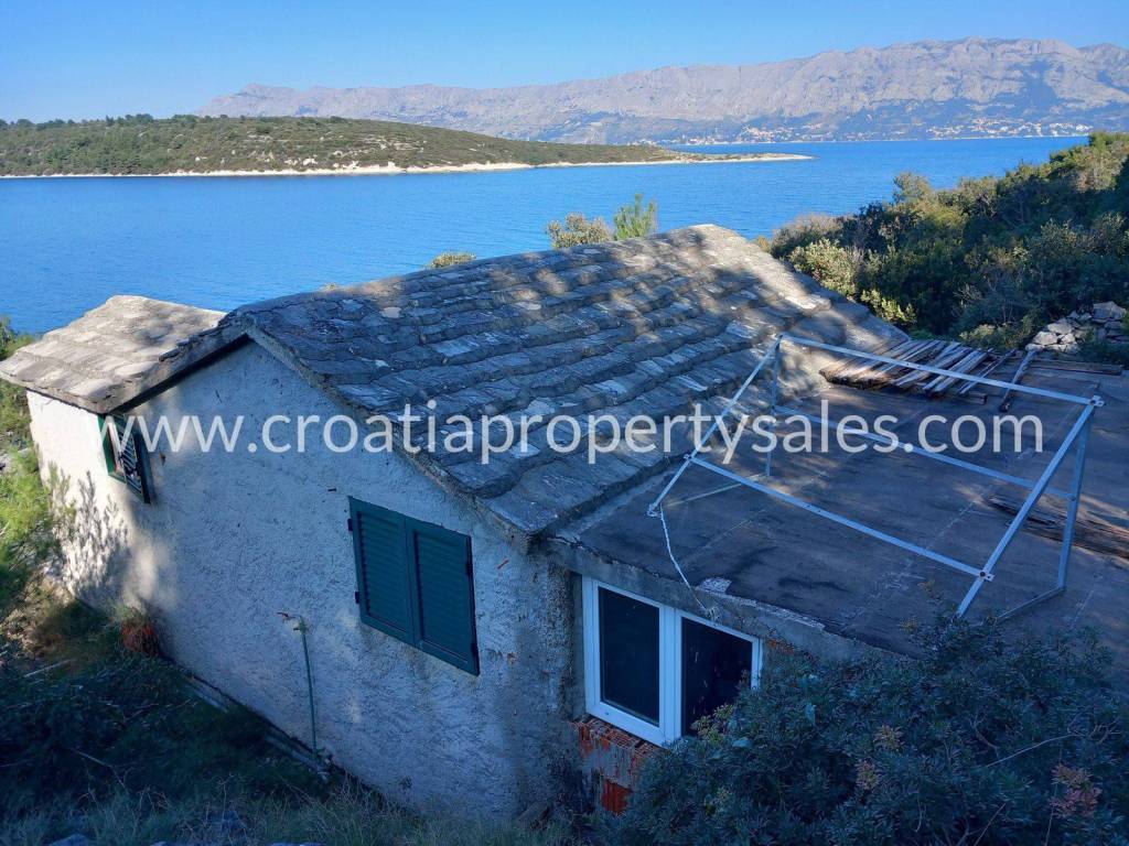 House first row to the sea in an extremely attractive location.Just a few meters from the sea. The land is 3,400 m2, and the total area of the building is 55 m2.Legalized as a residential building. It consists of a living room, kitchen, bathroom and two bedrooms.The property needs to be completely renovated. There is also a foundation of a 31 m2 building on the plot, which is registered and therefore can be legally reconstructed.Possible expansion of external areas such as terraces, gazebo, canopy.The property has vehicle access and parking spaces.It provides maximum privacy, and has direct access to the sea.