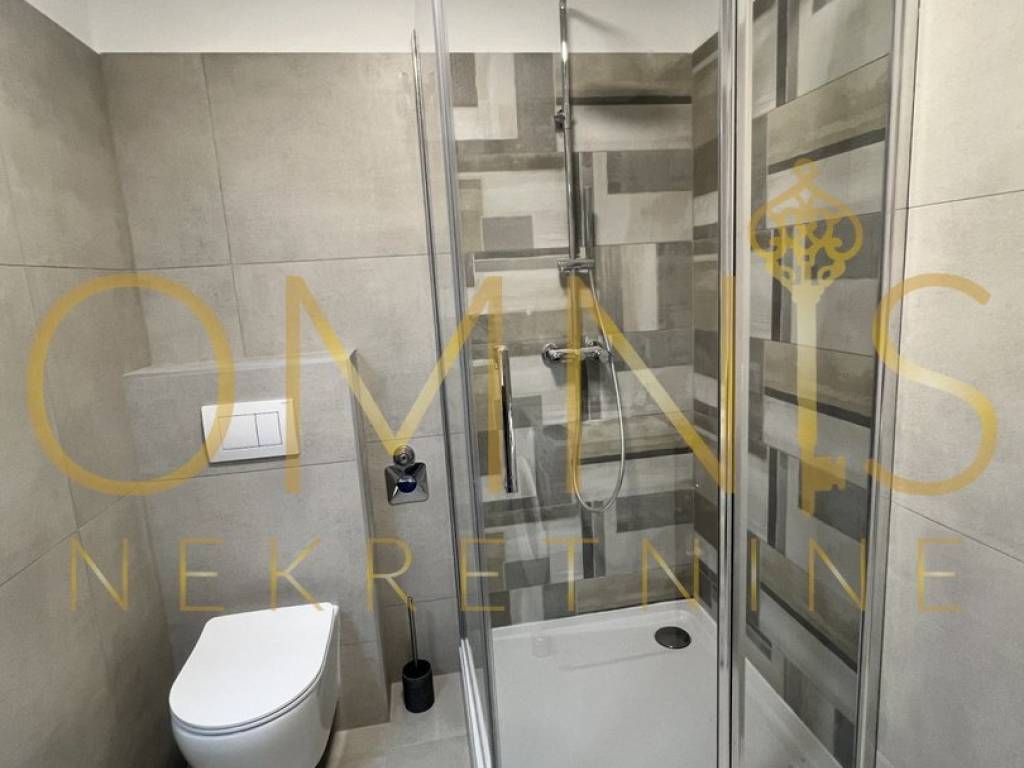 Kupaonica je moderno opremljena s tuš kadom, ugradbenom wc školjkom i perilicom-sušilicom rublja.