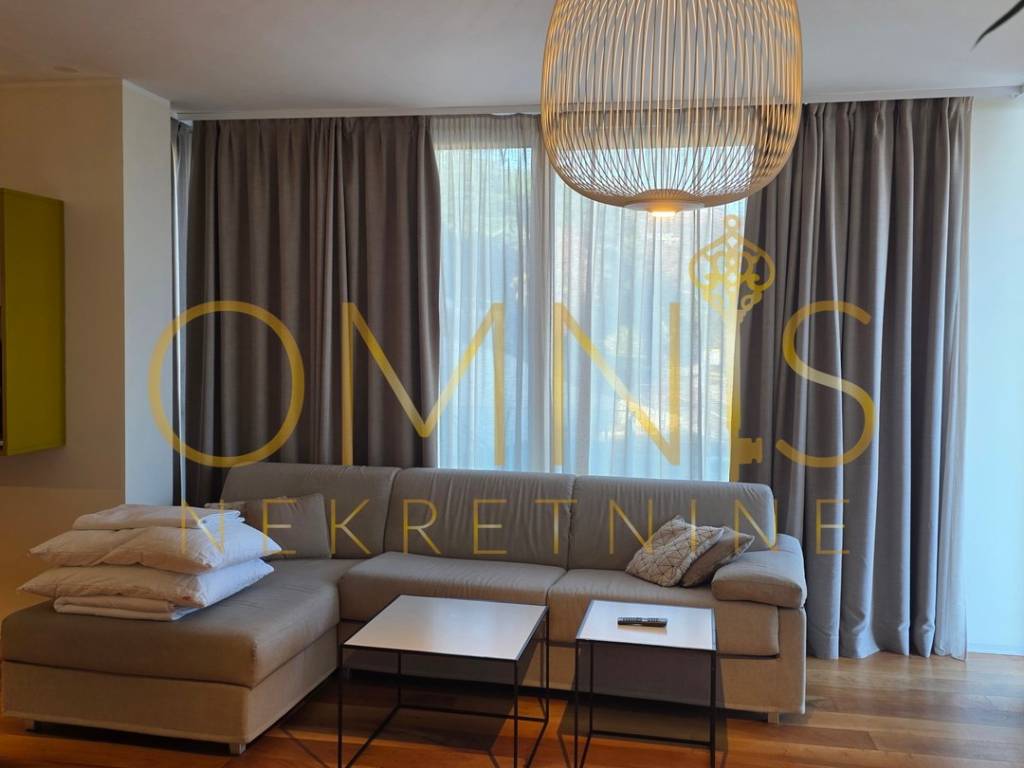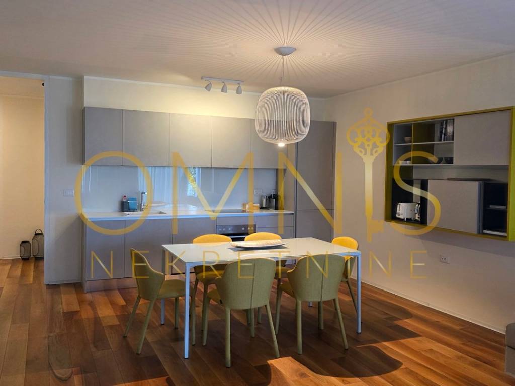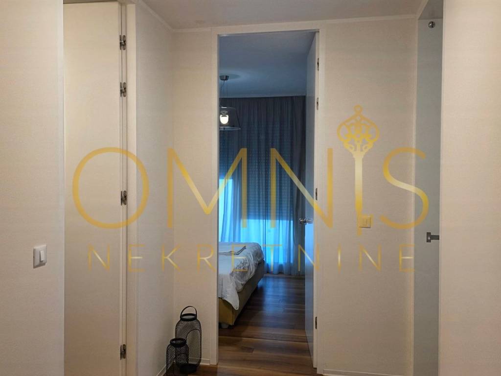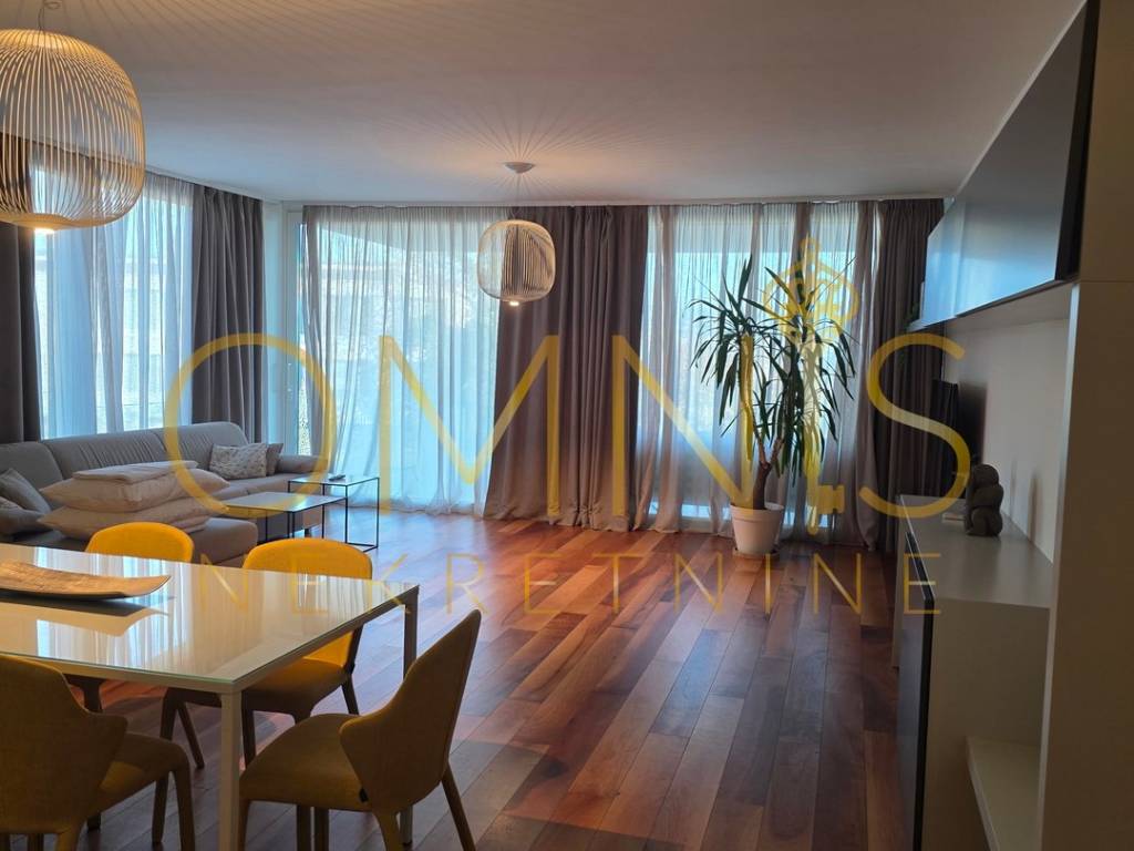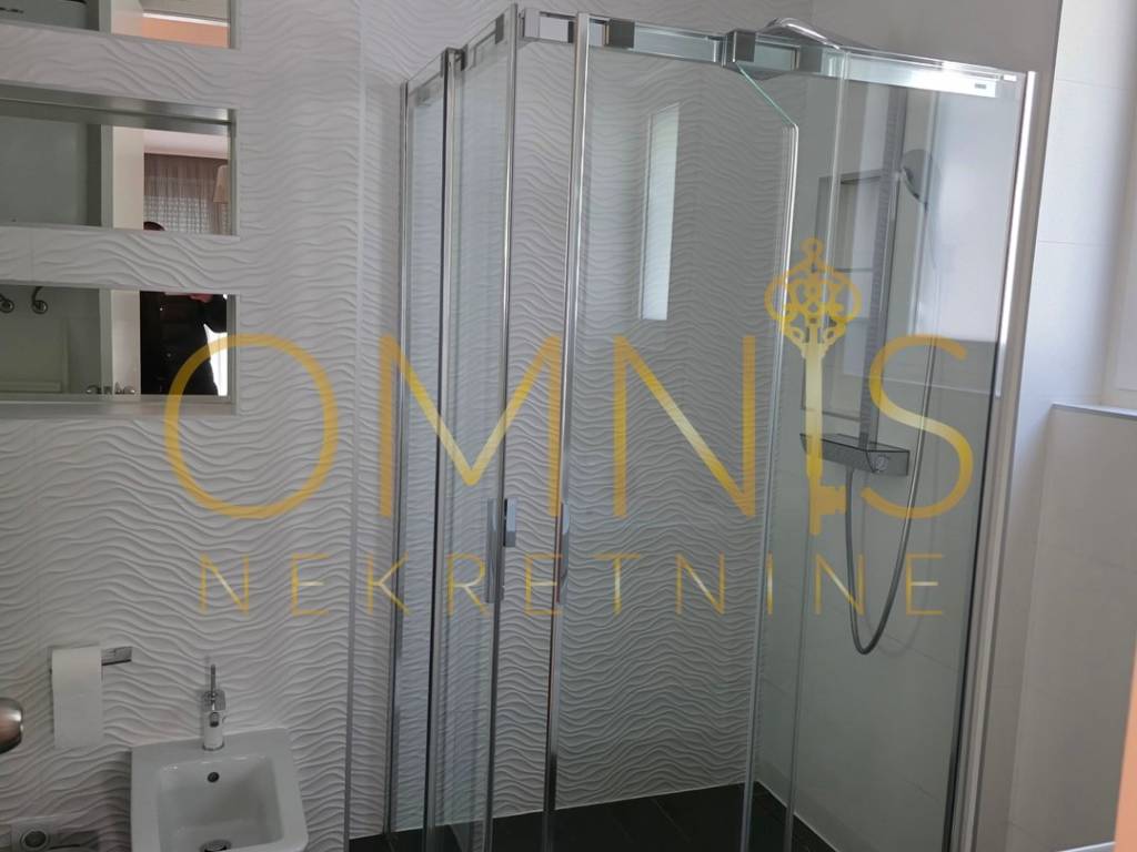 Iznajmljujemo stan u novogradnji s podzemnom garažom, liftom i bazenom. Ovaj predivan stan površine 122,60 m2 nudi savršenu kombinaciju funkcionalnosti i elegantnog dizajna. Sastoji se od komfornog i svijetlog dnevnog boravka koji ima izlaz na prostranu terasu, moderno opremljene kuhinje s blagovaonom, dvije udobne spavaće sobe, hodnika, dvije kupaone i prostrane terase koja je idealna za opuštanje i uživanje. Stanu pripadaju 1 parkirno mjesto u garaži i spremište. Nalazi se svega 120 m od mora. Zgrada ima zajednički bazen sa sunčalištem na korištenje. Za sve ostale informacije i razgled stojimo na raspolaganju.