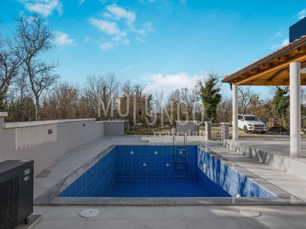 In front of the house there is a covered terrace with a swimming pool and a sundeck where you can relax on warm summer days.