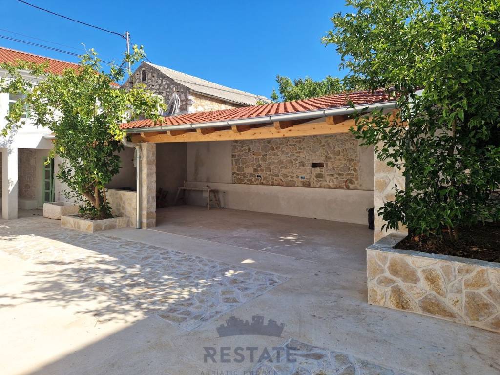 Prodajemo renoviranu kuću u Sutomšćici, na otoku Ugljanu. Kuća se nalazi na parceli ukupne veličine 296 m2. U naravi stambeni dio ima 113 m2 što predstavlja dnevni boravak sa kuhinjom i odvojenim wc-om na donjoj etaži te jednu manju sobu sa posebnim ulazom i vlastitom kupaonicom. U 1. katu (do koje vode vanjske stepenice, kao što se vidi na slikama) nalaze se dvije komforne spavaće sobe svaka sa svojom kupaonicom i lijepom terasom orijentiranom na JZ. Posebnost nekretnine je velika natkrivena vanjska kuhinja (cca 49 m2), sa strujom i vodom, koja se po potrebi može pretvoriti u stambeni prostor. Okućnica ukupne veličine 134 m2 popločana je novim kamenom.