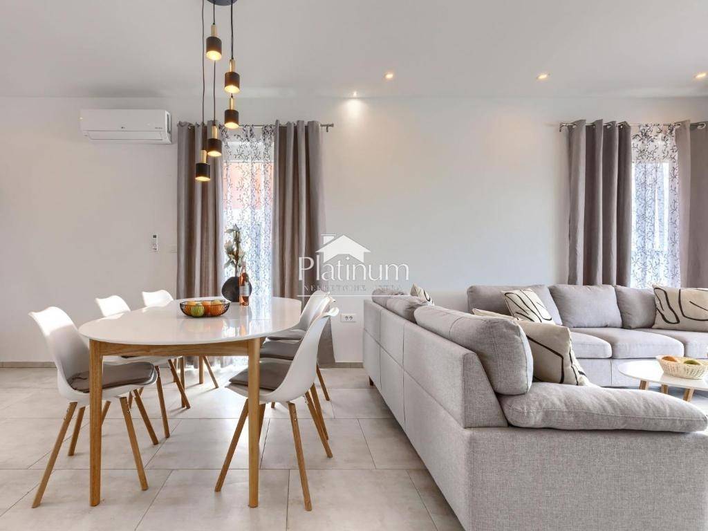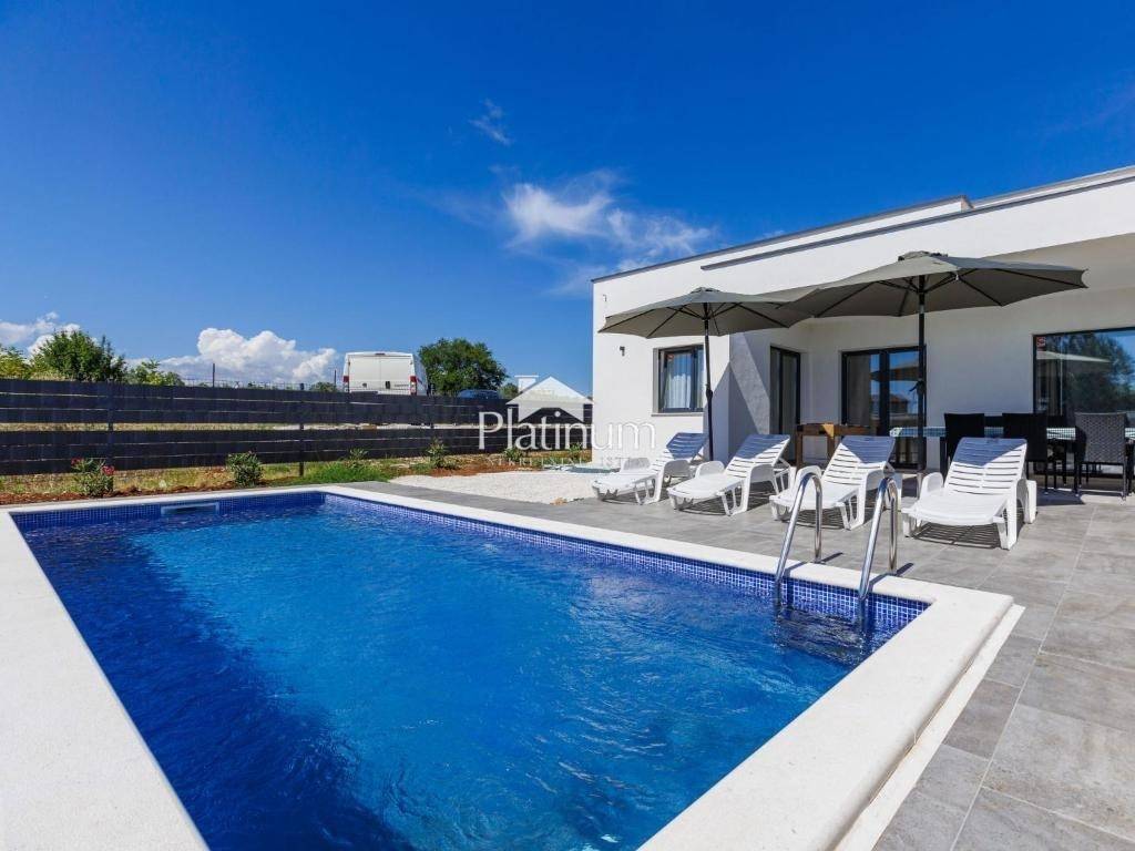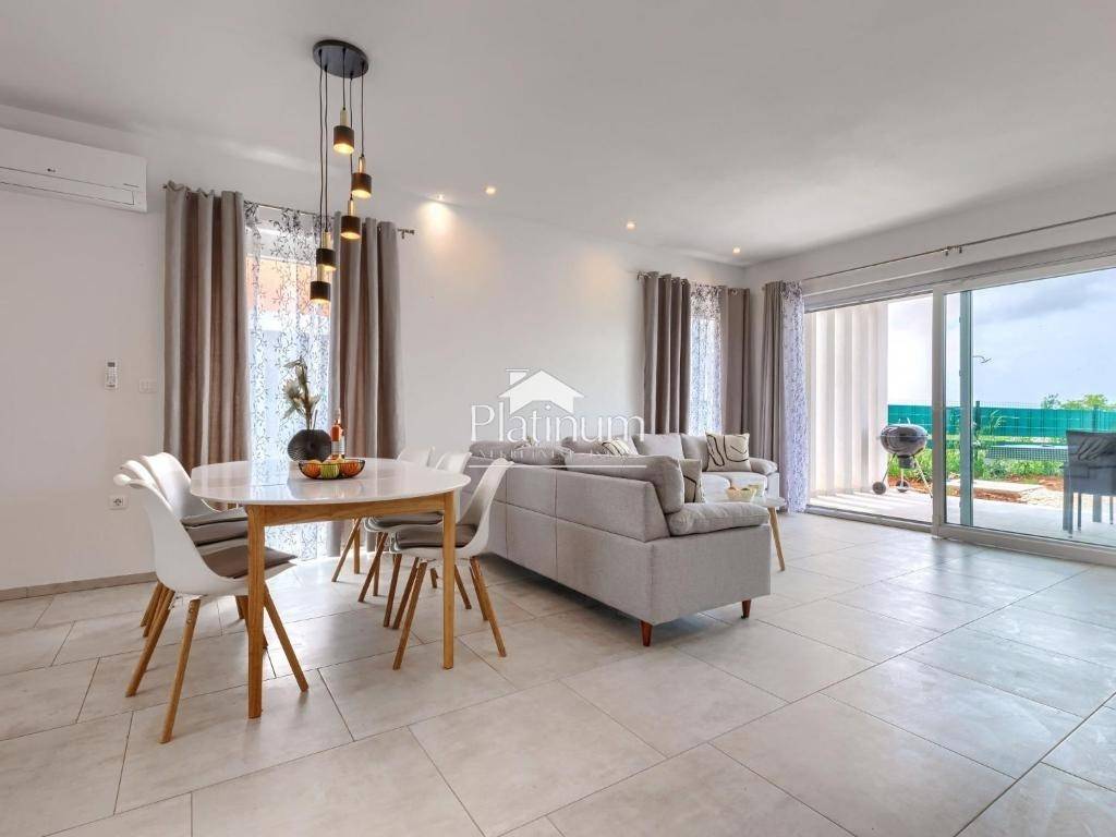 A new, modernly designed single-storey house with a total living area of 114 m is for sale. The house consists of three bedrooms, a spacious living room with kitchen and dining room, two bathrooms and a covered terrace with access from the living room. In the extension of the terrace there is a heated saltwater swimming pool of 24 m and a sunbathing area. The yard is completely fenced, which ensures privacy and peace. The property is located in an exceptionally quiet location, in the immediate vicinity of Vodnjan, which makes it ideal for a pleasant family life or tourist rental. For all additional information, please feel free to contact us at +385976668173.