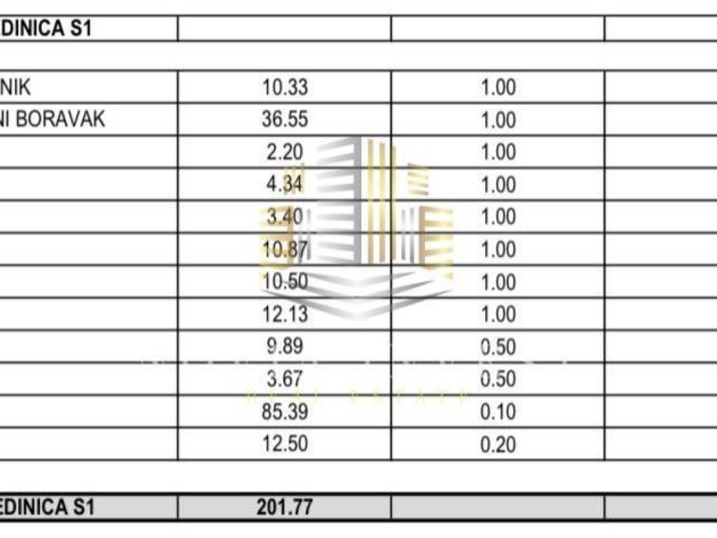 Površina: Neto korisna površina stana iznosi 108,14 m² Bruto građevinska površina iznosi 201,77 m²
