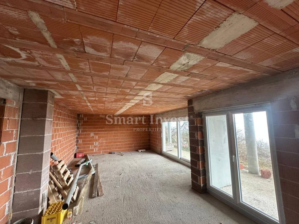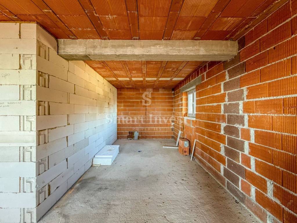 The house is being sold with a completely finished facade and built-in external joinery, which allows the future owner to continue the design and finishing work according to their own wishes and needs.