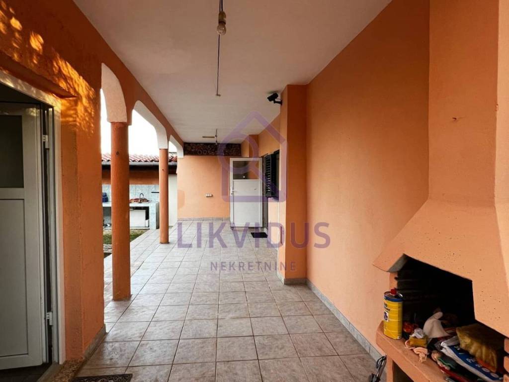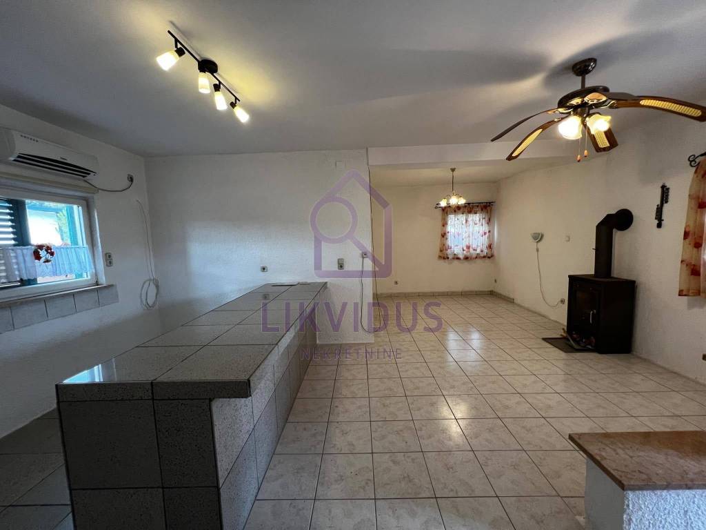 Površine je 102 m2, te garaže 40 m2. U prizemlju kuće nalaze se dnevni boravak, kuhinja, soba, te kupaona. Sa druge strane kuće se ulazi u još jednu zasebnu sobu. U podrumu kuće nalazi se još jedna prostorija.