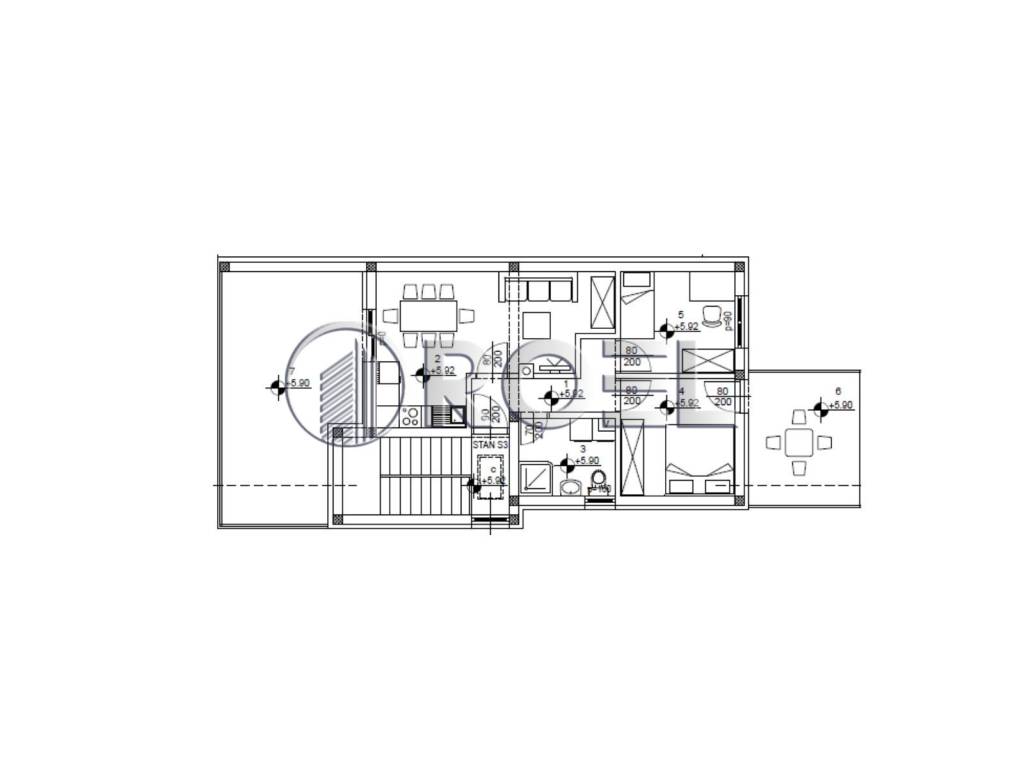 Apartment S2 is designed in a functional and modern way and consists of an entrance hall, a spacious living room with a kitchen and dining room in an open space concept, a bedroom, a children's room, a bathroom and two uncovered terraces. The price includes one parking space, and the apartment also has a garden of 200 m2. A special advantage of this property is its excellent location, with immediate proximity to a kindergarten, school, health center, post office, shops, bus station and all other facilities necessary for a comfortable and quality life.