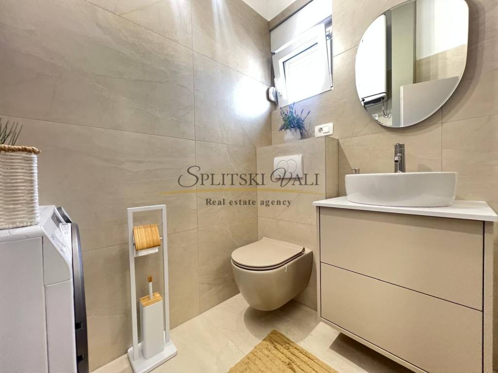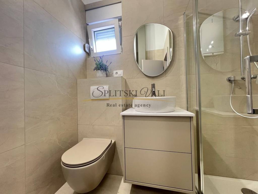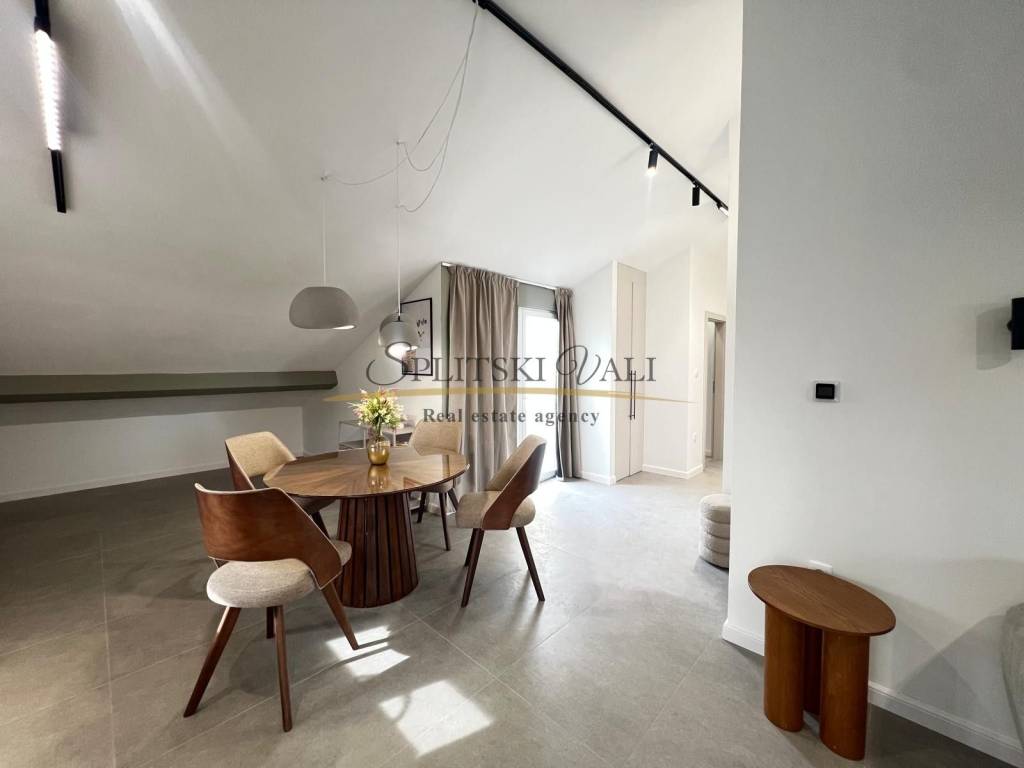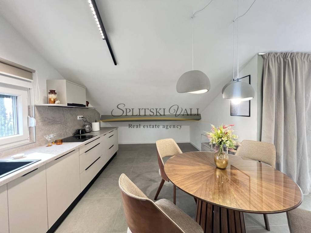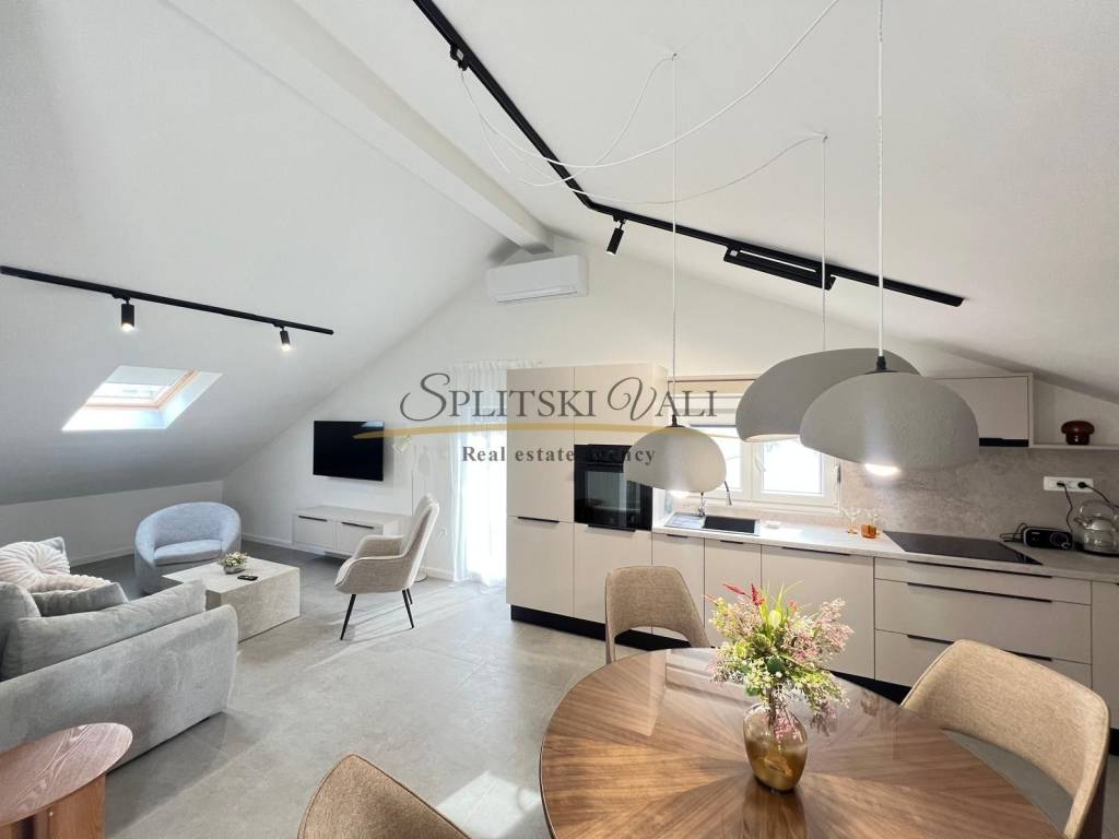 Posredujemo u najmu dvosobnog stana u potkrovlju u Kaštel Starom, uz Staru kaštelansku cestu, u blizini svih sadržaja i autobusne stanice. Stan ima ukupnu stambenu površinu od 90 m te se sastoji od dvije sobe, od kojih jedna ima vlastiti WC, kuhinje s blagovaonicom, hodnika i jedne kupaonice. Stanu pripada i terasa površine 10 m, kao i jedno parkirno mjesto.