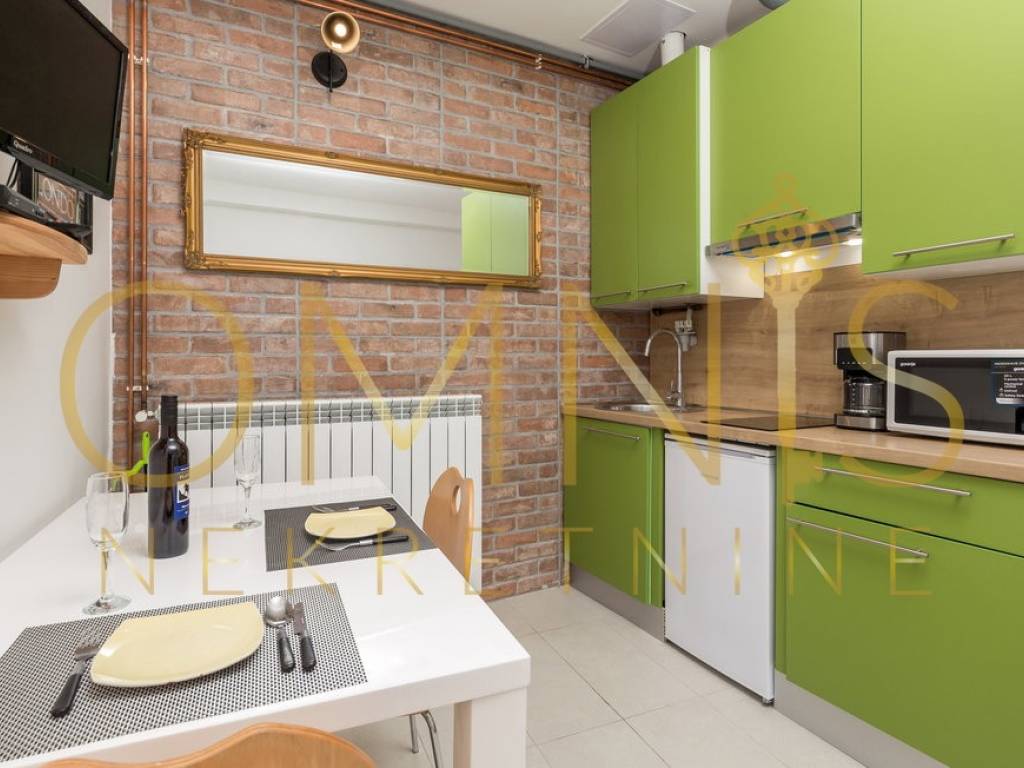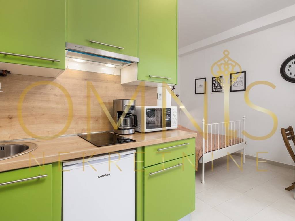 Garsonijera je južne orijentacije, što osigurava obilje prirodnog svjetla tijekom dana. Prostor je namješten i opremljen – uključuje kuhinju s aparatima, krevet, perilicu rublja i TV, dok balkon pruža dodatni prostor za opuštanje.
