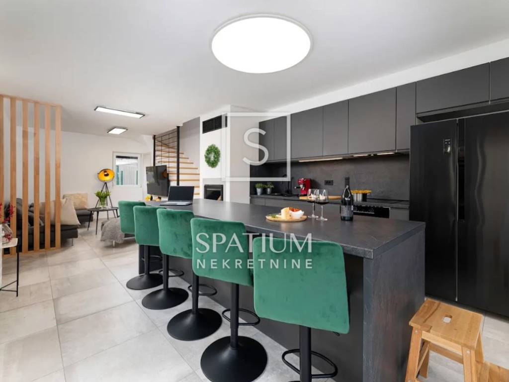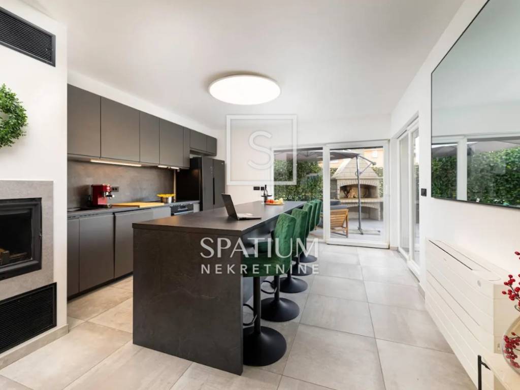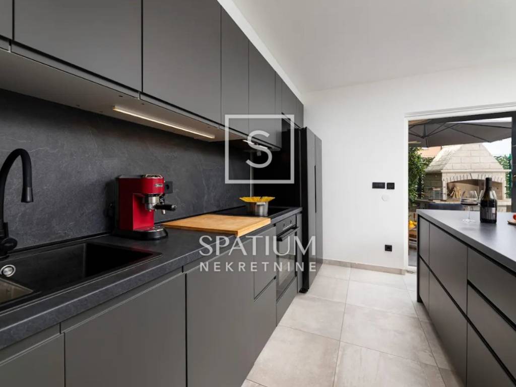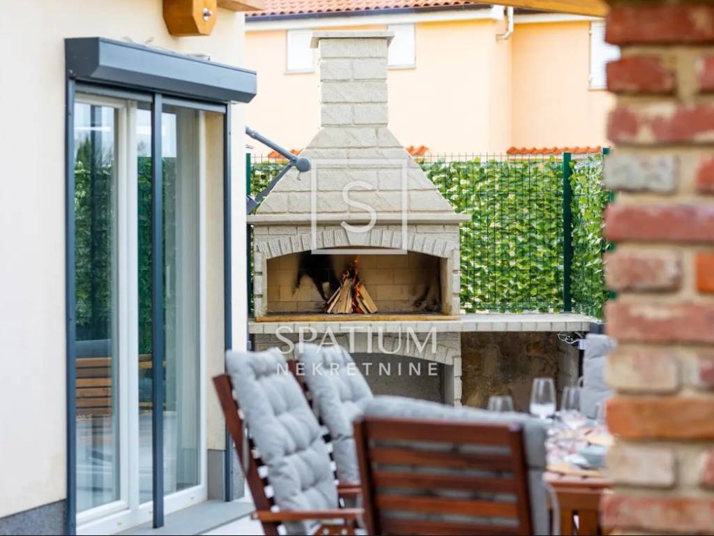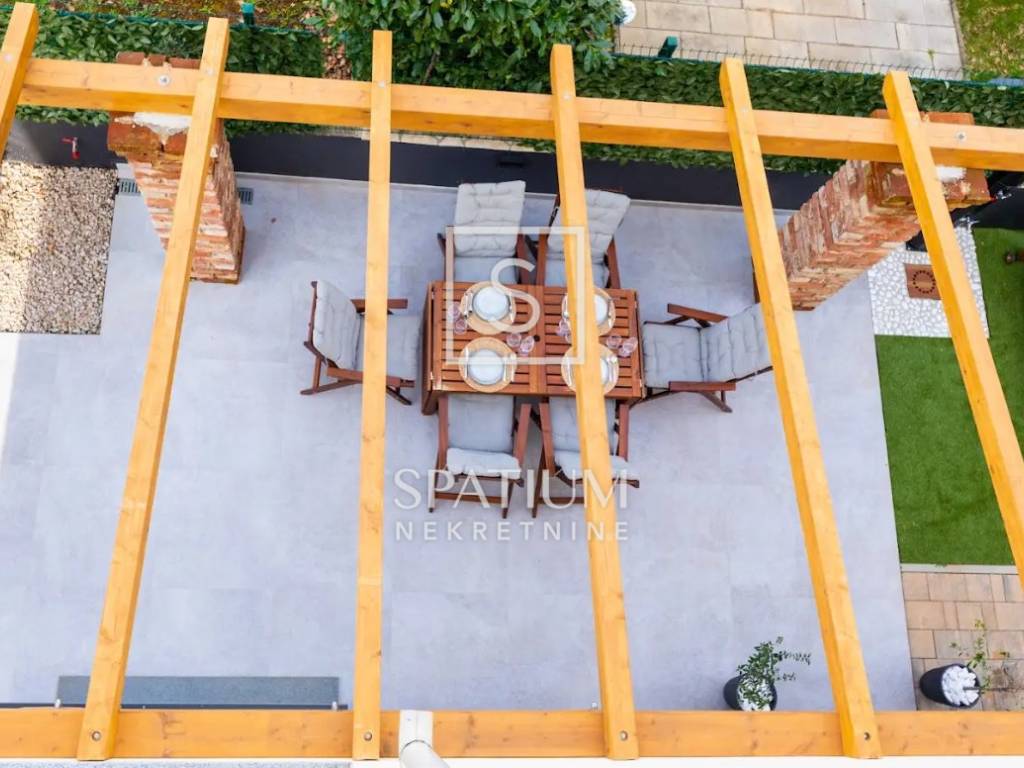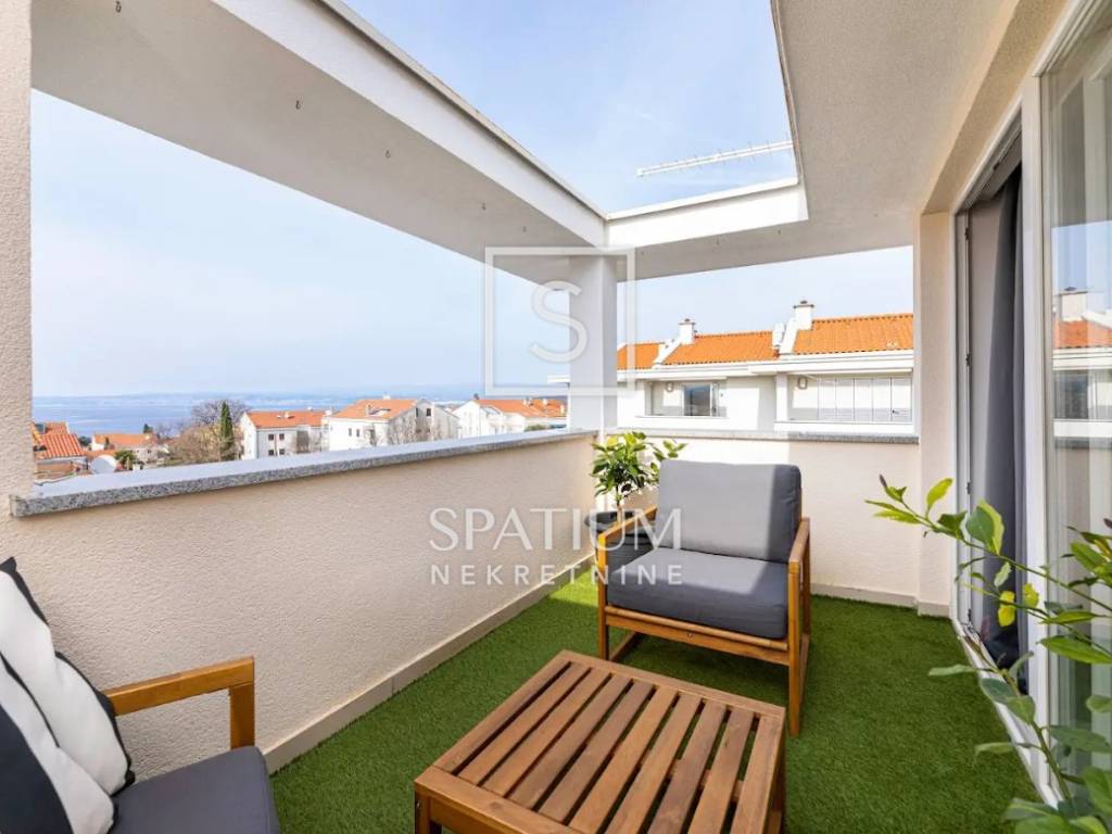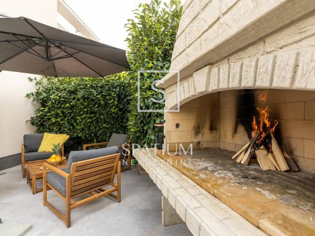 THE ISLAND OF KRK, MALINSKA, offers a three-story apartment located in a smaller building of recent construction. The area is 112.72 m2. From the arranged parking lot for two vehicles, you enter the landscaped garden belonging to the apartment, and from that part you enter the apartment. On the ground floor there is a living room with a kitchen and dining room, a pantry and a bathroom. An internal staircase leads to the first floor where there is a spacious bedroom with a bathroom and a wardrobe, and on the second floor there is another bedroom with a bathroom and access to a balcony with a beautiful view of the sea. The building is of quality construction and equipment. Daikin air conditioners have been installed, while there is also electric underfloor heating for heating and a fireplace in the living room for a nice atmosphere. Certainly the most important part of the summer stay is the decorated terrace with barbecue, fenced and surrounded by greenery, providing maximum privacy. "Malinska is the pearl of the Kvarner Islands" was written by the professor of the University of Vienna, L. Waagen in 1905. Tourism, which is today the main economic activity, started in Malinska at the turn of the 19th and 20th centuries, thanks to the development of railway and steamship traffic. The first recorded guests were hunters, Austrian and Hungarian aristocrats and Rijeka patricians. They came to the vicinity of Malinska to hunt snipe and other feathered game. Mediterranean culture, as the culture of the Croatian island, is immersed in family, architecture, music and food - its cultivation, processing, preparation and consumption. As the local population engaged in fishing, growing olives, vines, figs and sheep, the tradition was nurtured and proudly lives on today. The interesting and diverse surroundings of Malinska reveal many natural attractions and old historical sites dating back to ancient times. For other information, please contact us with confidence. Spatium nekretnine +385 51 272 903 info@spatium.hr