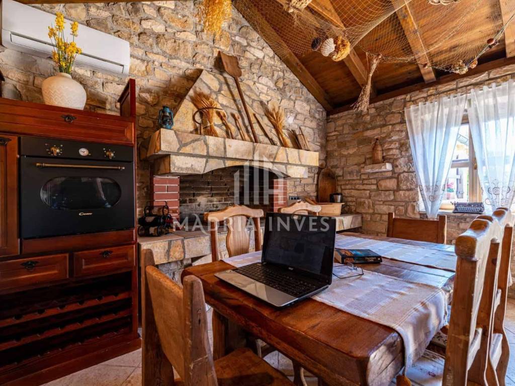 This villa has 2 floors (ground floor, first and second floor) and comes together with an additional stone house in which there is a fireplace, but also everything you need to spend pleasant time with your loved ones, but also if you need a separate place to do "remote " of digital business. The villa has 420m2 of useful space for your recreation, and on the ground floor of the villa there are two one-room apartments that come with two adjoining cottages where you can prepare morning or afternoon meals. The spacious two-story apartment is located on the first and second floors and has an attached kitchen, 4 bedrooms, and 4 bathrooms. There are terraces on each floor with a wonderful panoramic view.