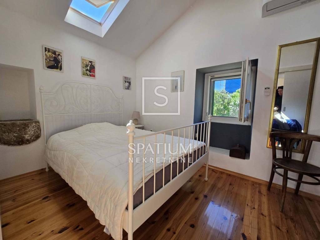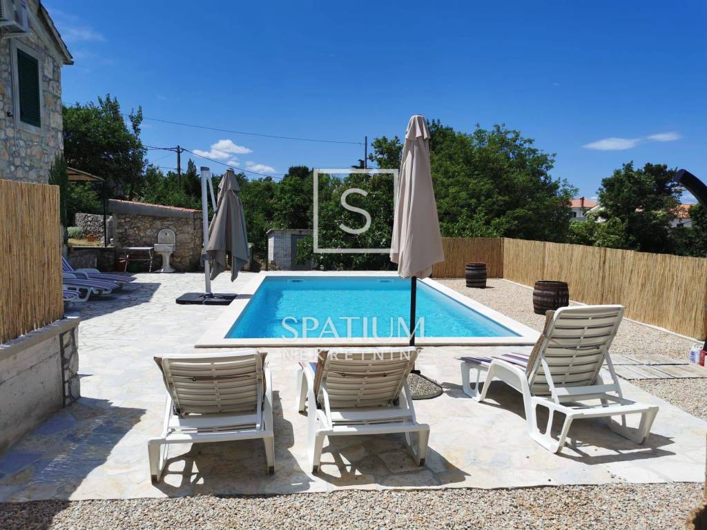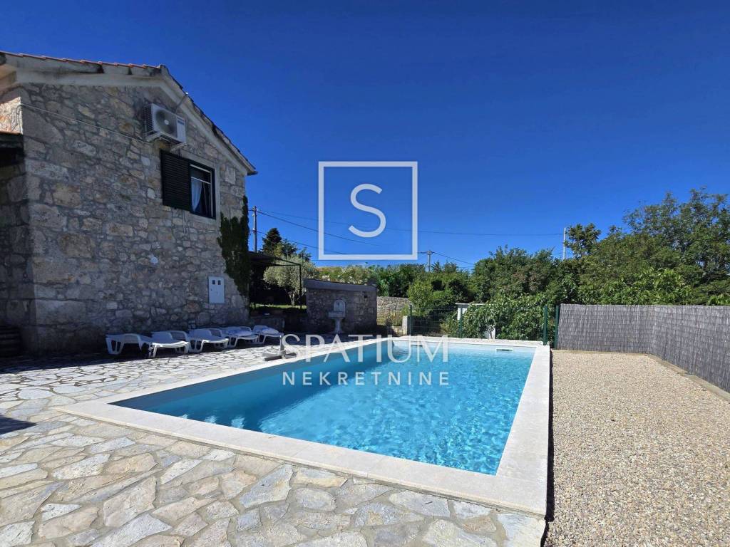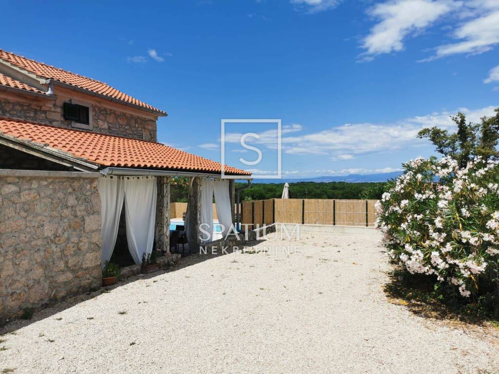 RASOPSASON, ISLAND OF KRK, we offer a renovated authentic stone house with a swimming pool. It is located on a plot of land of 913 m2 with a beautifully landscaped garden full of Mediterranean plants, a sunbathing area and a swimming pool of 35 m2. On the ground floor of the 104 m2 house there is a living room with a kitchen and dining area, and internal stairs lead to the first floor where there are two bedrooms and a bathroom. During the renovation, every detail was taken into account so that the house would retain its original appearance and become a comfortable place to live or an investment for tourism. It is sold fully furnished and equipped. It is located in a quiet part of this small town and surrounded by holiday homes, a few kilometers from Malinska, beaches and all major amenities. Rasopasno is located in the western part of the Dobrinj municipality, on the outskirts of the Malinska - Dubašnica municipality. It is in the interior of the island, a few kilometers from the sea. It was mentioned as early as 1471 in a Glagolitic document in which the Krk prince Ivan VII Frankopan granted a certain Ivan Seršić estates in the vicinity of Sužane (...the road that leads to Rasopasno...). The oldest part of the village, however, is called Kirjak, after the church of St. Kirijak that existed in the Middle Ages. The place was named after a plant, a tall grass called "rosopas" (lat. Chelidonium majus), which in Dobrinje is also called "Marijina rožica". For other information, please contact us with confidence.