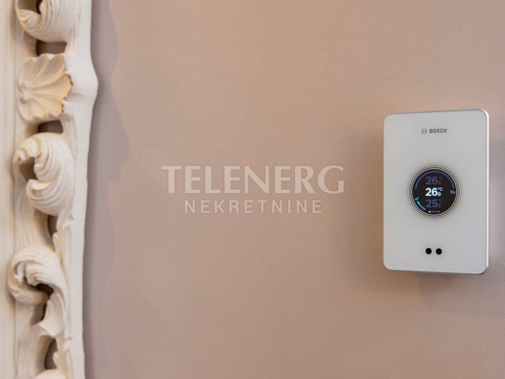 3-layer windows, larch wood front door, high-end Marantz hi-fi with 6-story speakers, Samsung air conditioners, two Samsung TVs 55˝ and 43˝, MaxTV, high-speed Internet, Bosh digital heating system, Heier washer and dryer, surveillance cameras, energy certificate B.