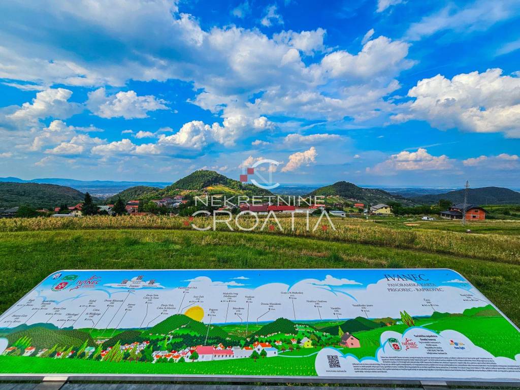 Građevinsko zemljište podno Ivanščice, neposredno uz parkiralište, ishodište s kojeg počinju i završavaju gotovo svi pohodi na vrh Ivanščice (1.061 m)!