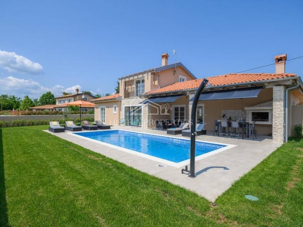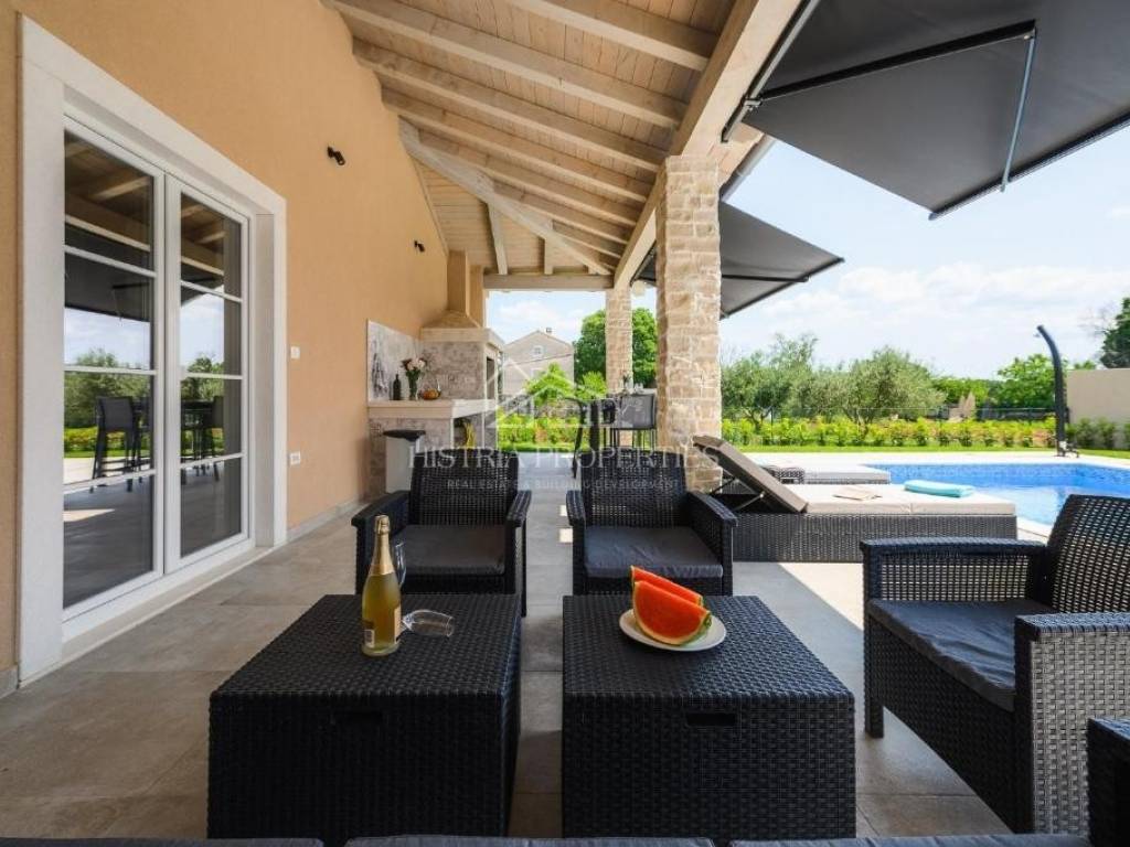 The exceptional Villa with a swimming pool is a real opportunity on the market considering the price and the quality with which it was built and the quality furniture and appliances with which it is equipped. Only 15 minutes of easy driving from the center of Rovinj, it is located in a small Istrian village with a dazzling view of the sea. The house is an excellent combination of authentic Istrian architecture with elements of the well-known Tuscan villas that are always in fashion.