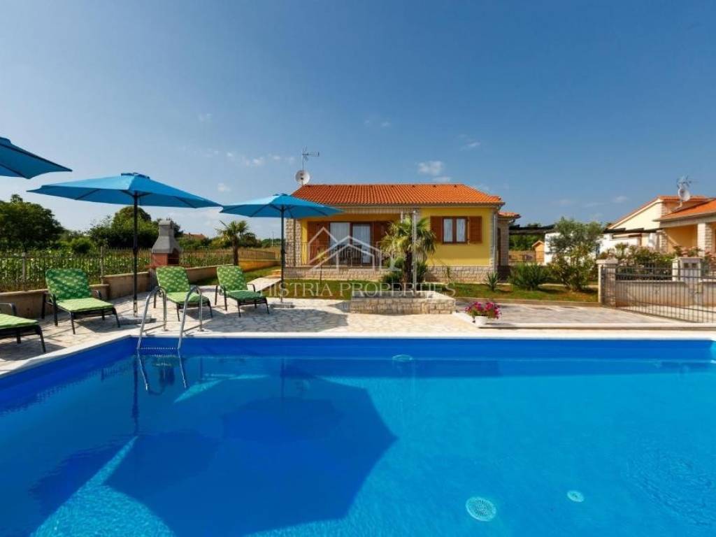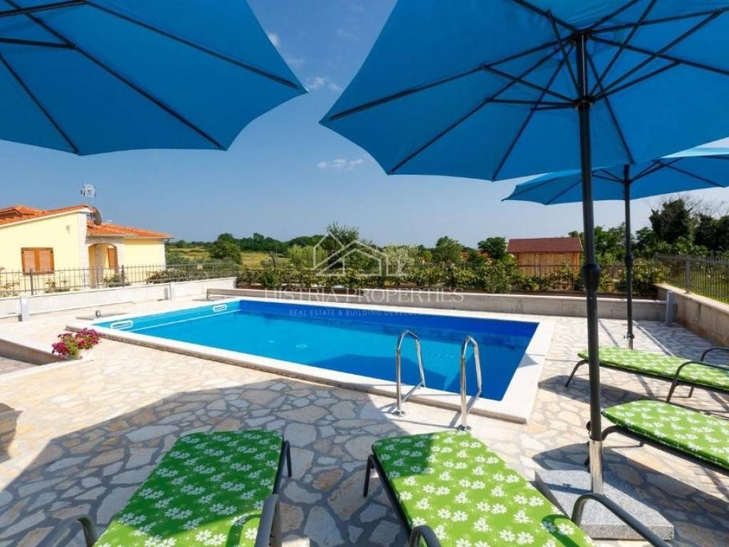 A lovely single-storey house with a swimming pool and a beautifully landscaped yard is for sale in the vicinity of the city of Poreč.