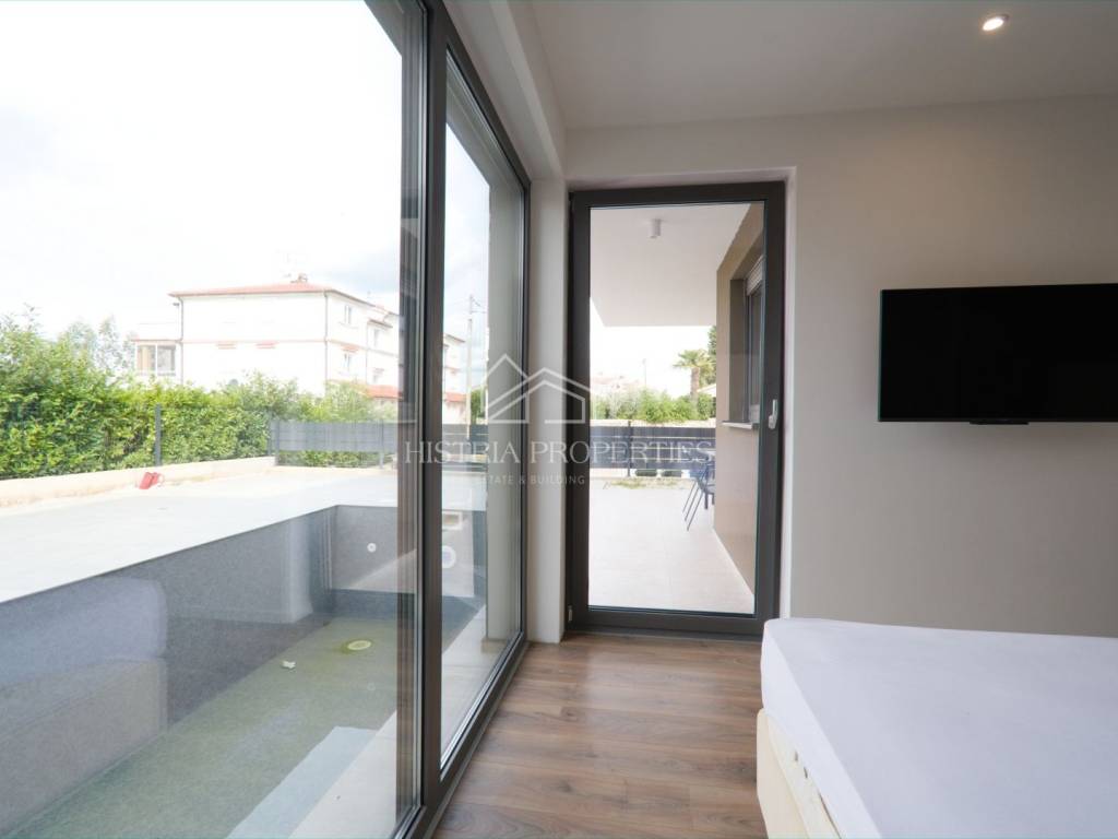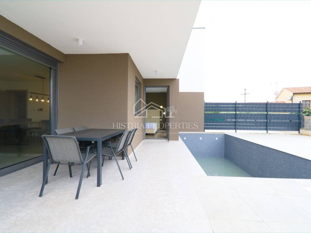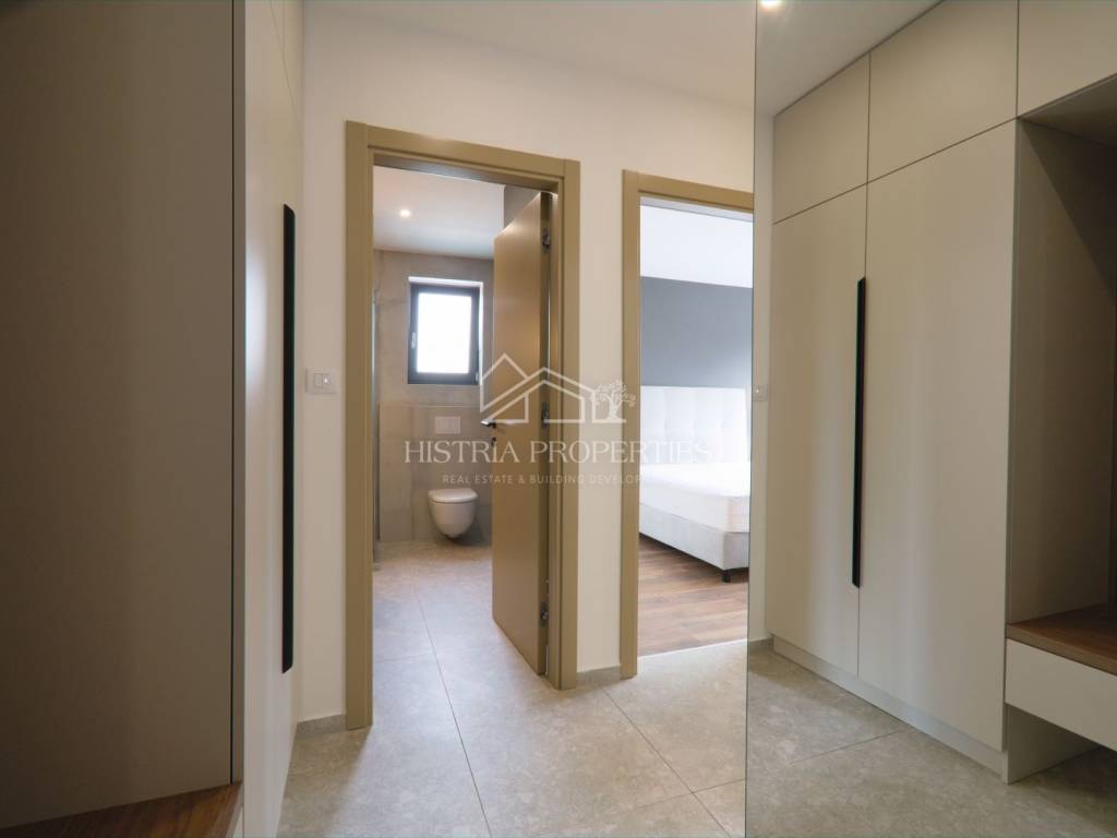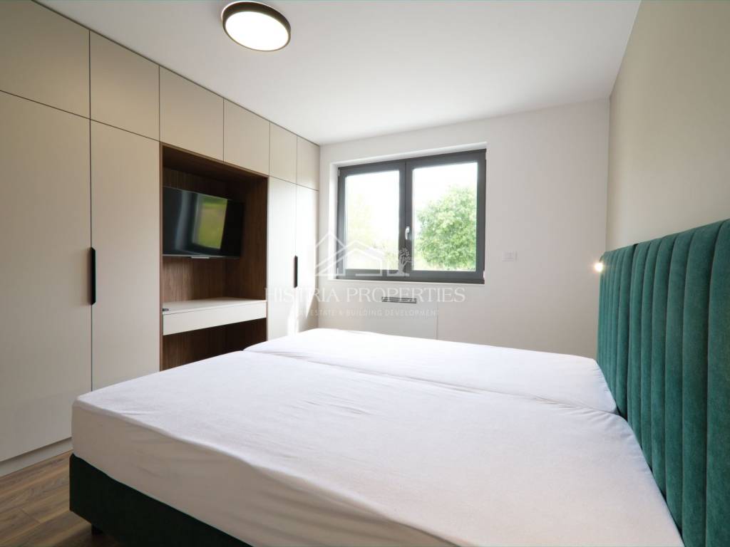 In a well-connected location, just a few minutes' drive from the center of Poreč and beautiful beaches, this new apartment with a swimming pool is located, fully equipped and ready to move in.