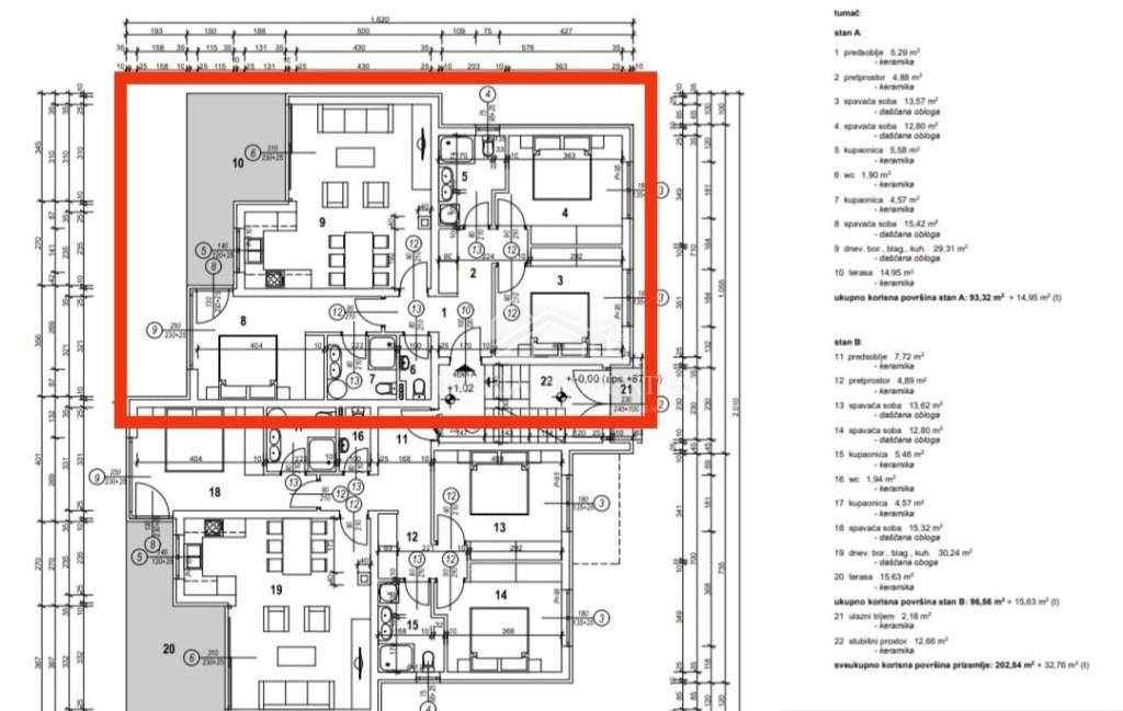 The apartment is located on the ground floor of an intimate new building of only 4 units and consists of an entrance hall, a living room with an open-plan kitchen and dining area, 3 bedrooms, one of which has its own bathroom with access to the pool and a large terrace, an additional bathroom and a guest toilet. The living area leads to a terrace that is partially covered with an open area where the pool is located with the possibility of setting up a barbecue area or a functional summer kitchen.