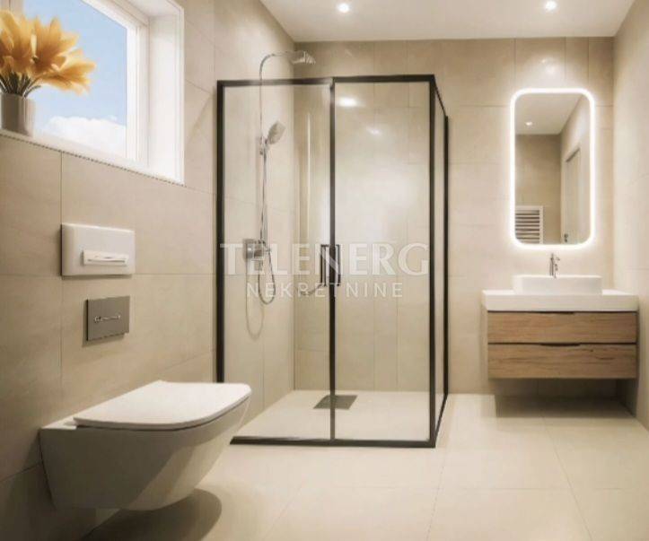 The house consists of: entrance hall, kitchen with dining room and living room, three bedrooms, bathroom, additional toilet, terrace, storage room.