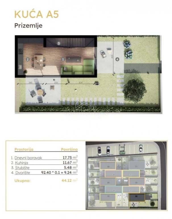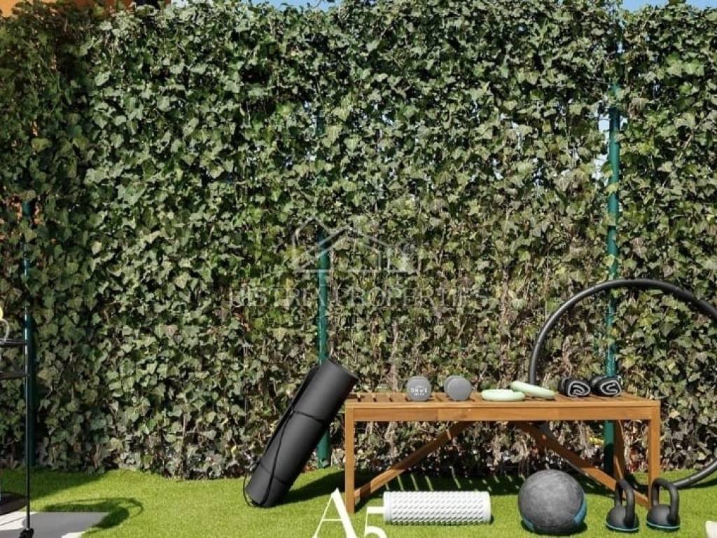 The ground floor has a living room with a kitchen and dining room and an exit to the courtyard where there is a jacuzzi and a place for relaxation or exercise outdoors with a separate toilet.