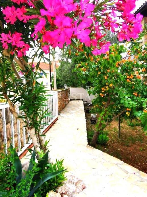 The yard is carefully landscaped and maintained, enriched with greenery and trees that ensure privacy and a pleasant atmosphere. In the courtyard there is a parking lot with a capacity for up to eight vehicles. The house stands out for its high-quality maintenance and the use of alternative energy sources, including solar panels.