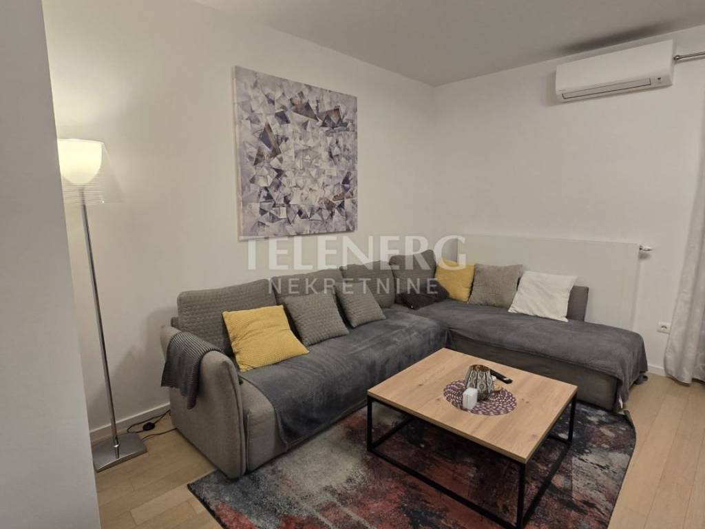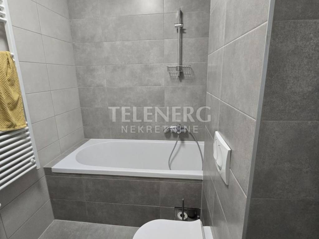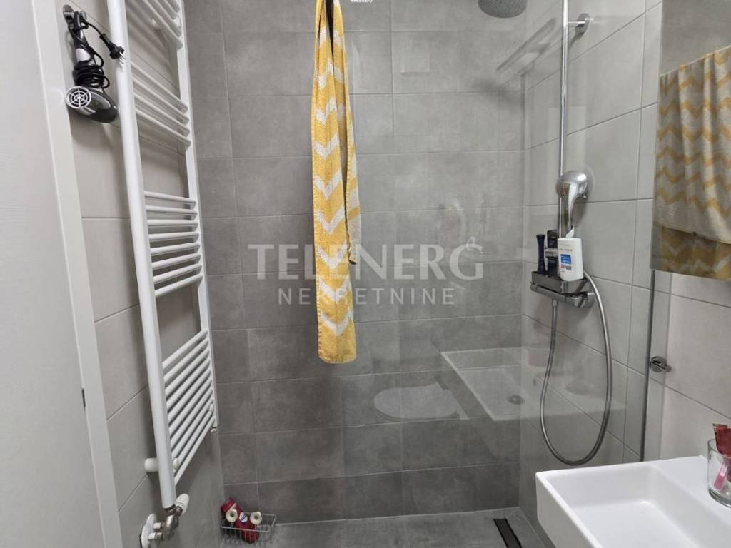 A spacious living room with lots of natural light, a functionally designed kitchen, two comfortable bedrooms, a hallway, a loggia and two modern bathrooms: a master bathroom with a bathtub directly connected to the master bedroom and a second bathroom with a walk-in shower.