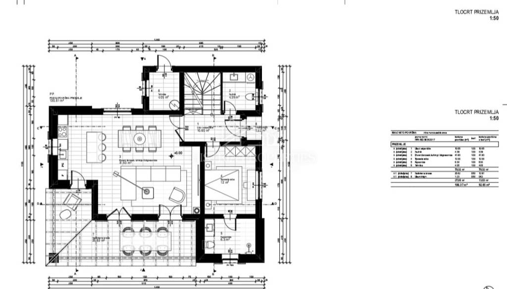The villa consists of an entrance hall, an open living area with a kitchen, dining room and living room and access to a terrace that is covered and connected to a sundeck and swimming pool, 4 bedrooms, 2 of which have their own bathrooms and 2 rooms on the first floor share one large shared bathroom with a bathtub. All rooms have their own terraces from which you can enjoy a striking sea view that offers unique sunsets. This stone beauty also has an additional toilet/laundry room, a technical room and a boiler room with an external entrance.