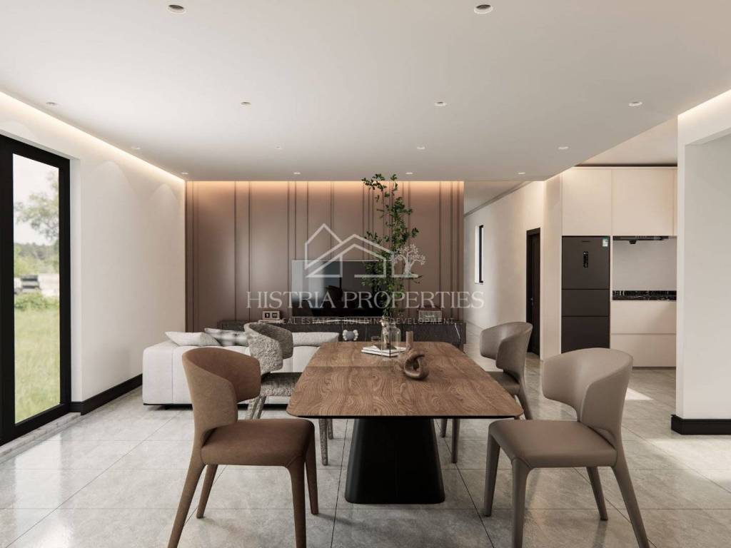 In a quiet part of the city of Poreč, in an attractive location 900m from the well-maintained beaches, a spacious and high-quality apartment with a terrace and 3 bedrooms is for sale.
