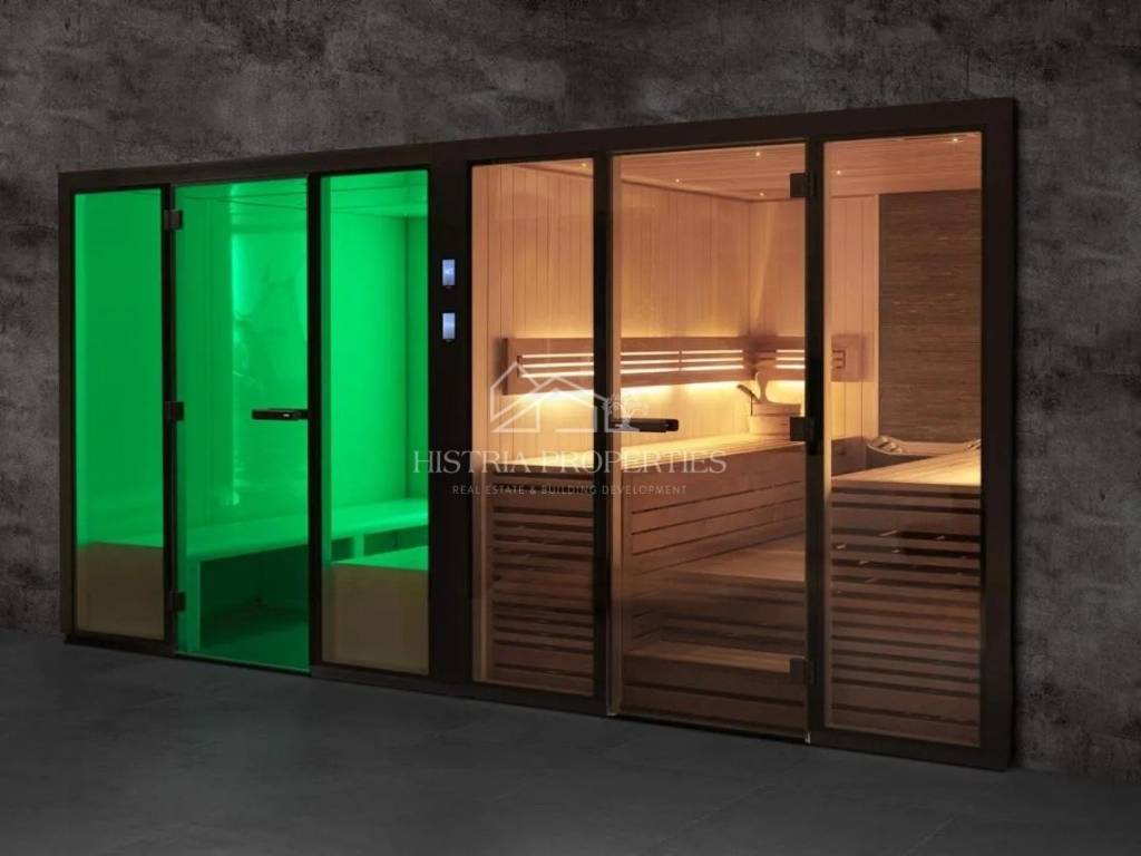 The villa itself consists of a spacious living area with a kitchen and dining room, 2 bedrooms, 3 bathrooms, a laundry room, a swimming pool that provides intimacy and a wellness area with a sauna and jacuzzi for enjoyment without noise and distraction.