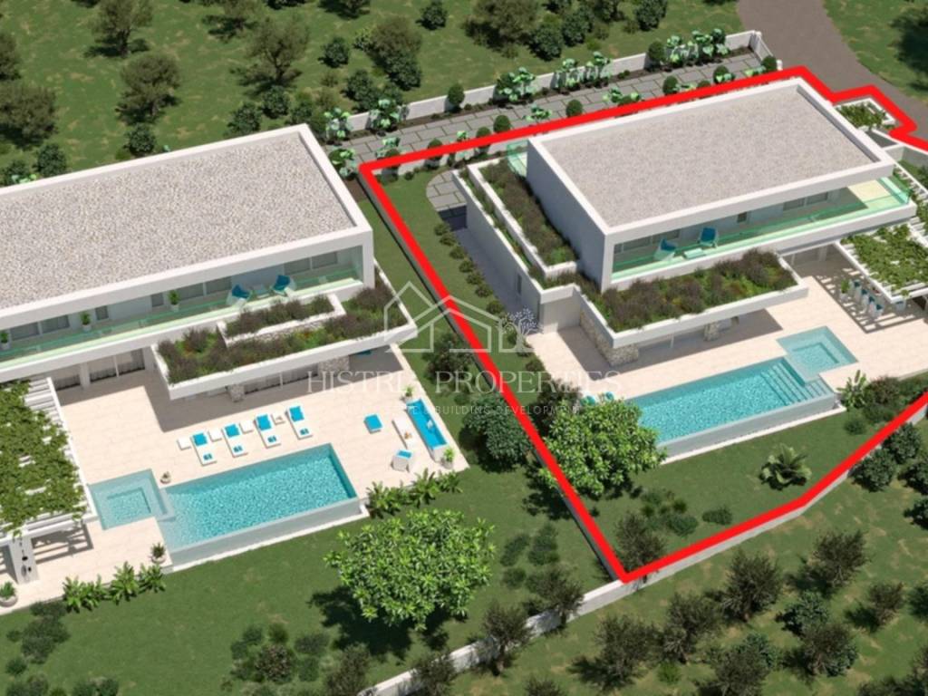 Surrounded by olive groves and nature, on the edge of a construction zone in a peaceful setting that is hard to find, this top designer villa is located. The unique combination of the highest level of design and elegance and comfort that the house offers in all its rooms will complement everyday use without complaints.