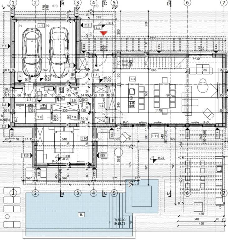 Upon entering the villa, we step into a spacious living room with kitchen and dining room that is richly lit by large glass walls of exceptionally striking aesthetics with a view of the pool, surrounding nature and the sea. On the ground floor there is also a bedroom with its own bathroom, dressing room and access to the terrace and pool, an additional toilet, boiler room and a garage for 2 cars that is connected to the house.