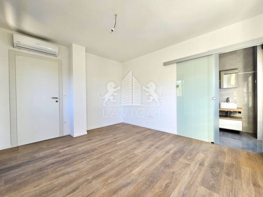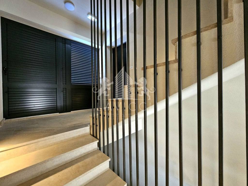 It consists of the first floor, where there is a comfortable room with its own en-suite bathroom. An internal staircase leads to the second floor, where there is a living room, a kitchen with a dining room, two bedrooms with a covered terrace, and a bathroom with a toilet. The apartment has a roof terrace with a view of the sea and the islands. A jacuzzi can be installed on the roof terrace, which makes this modern apartment an irresistible offer. The total living area of the apartment is 123.63m2.