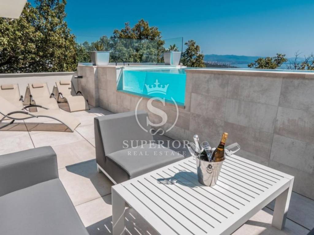 ust minutes from the sea and the heart of Opatija, on a peaceful hillside in Pobri, stands this impressive villa radiating elegance, space, and complete serenity. From the rooftop terrace, enjoy panoramic views of the Kvarner Bay and islands, while the infinity pool blends sky and sea into one.