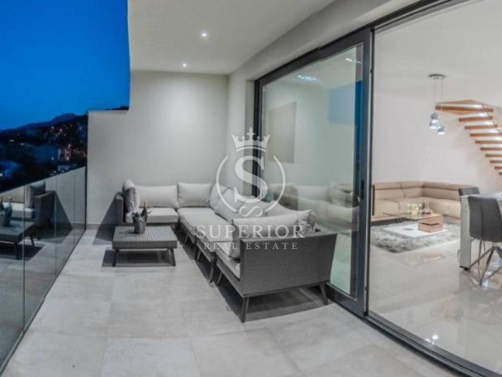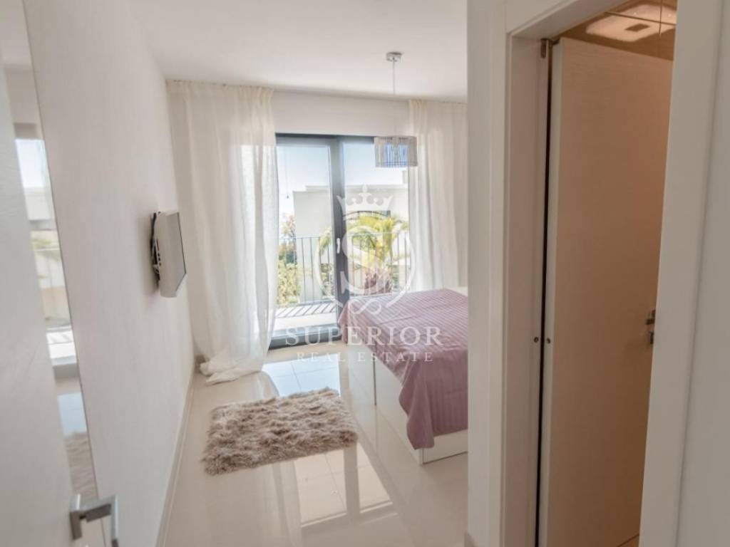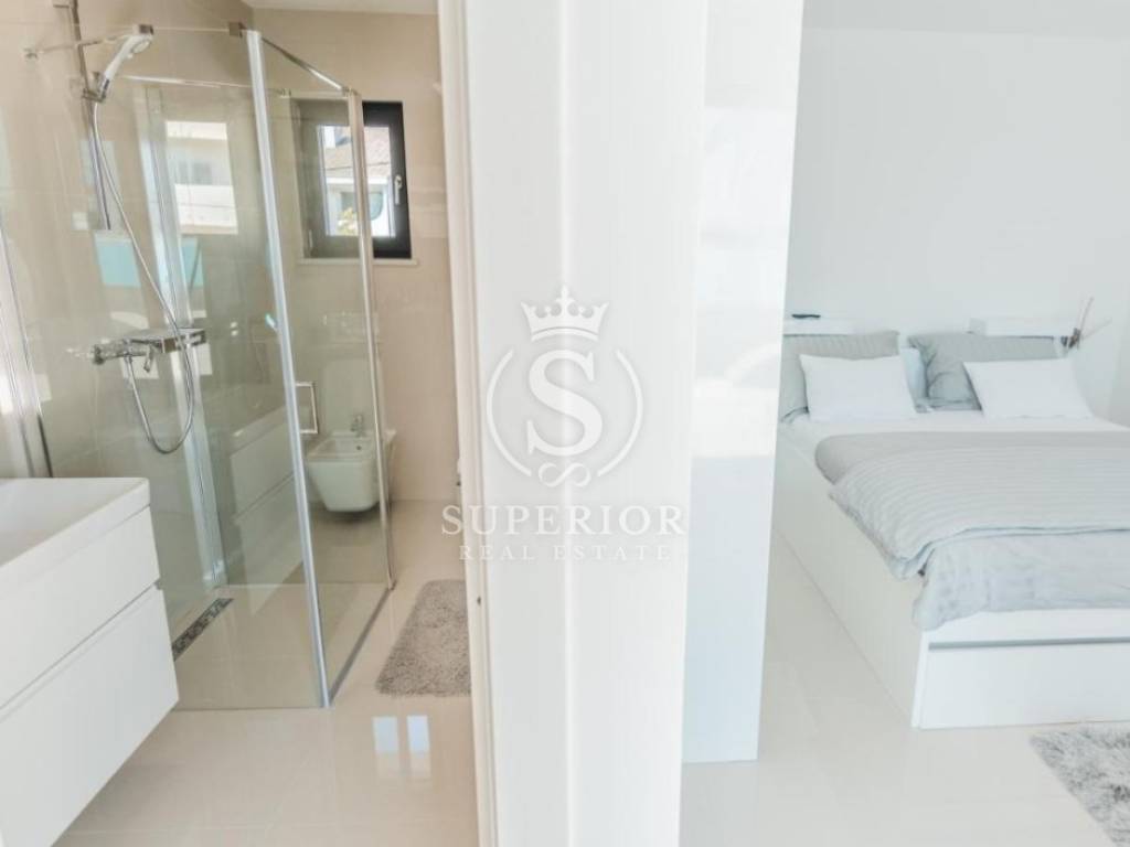 Spanning three levels, the villa perfectly balances luxury and functionality. Four bedrooms, each with its own bathroom, provide privacy and comfort. The spacious open-plan living area with kitchen and dining room is filled with natural light and views. Warm modern materials, high-end finishes, and underfloor heating ensure year-round comfort.