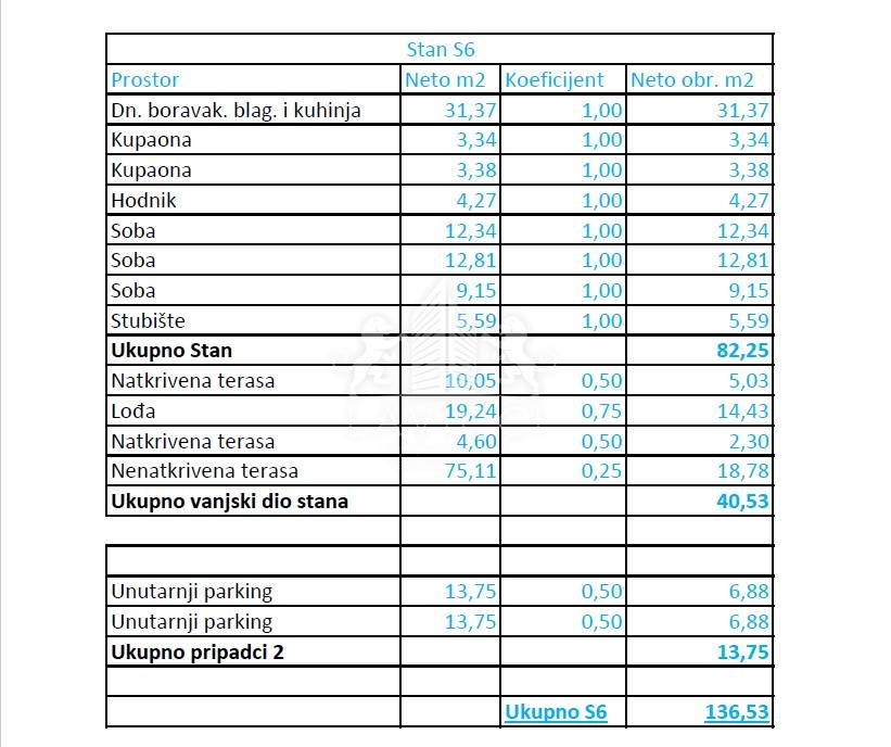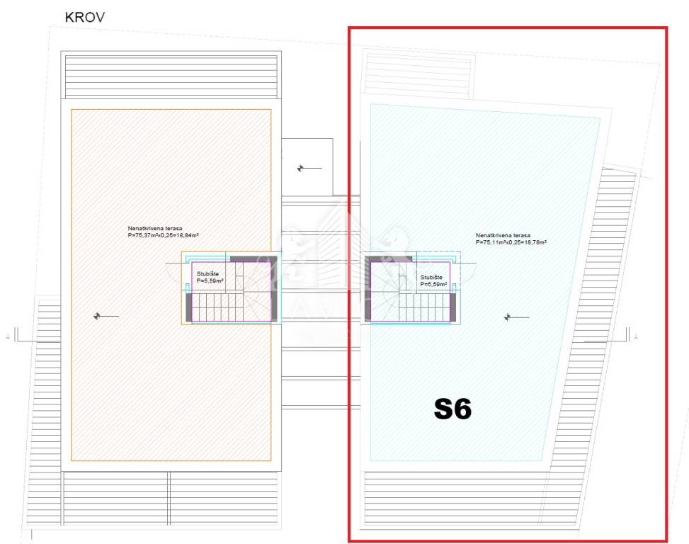The apartment has two garage parking spaces and a roof terrace of 75 m2. Water, electricity and drainage installations have been installed on the roof terrace, and it is possible to further enrich the space with other facilities such as a jacuzzi, barbecue, pergola and the like.