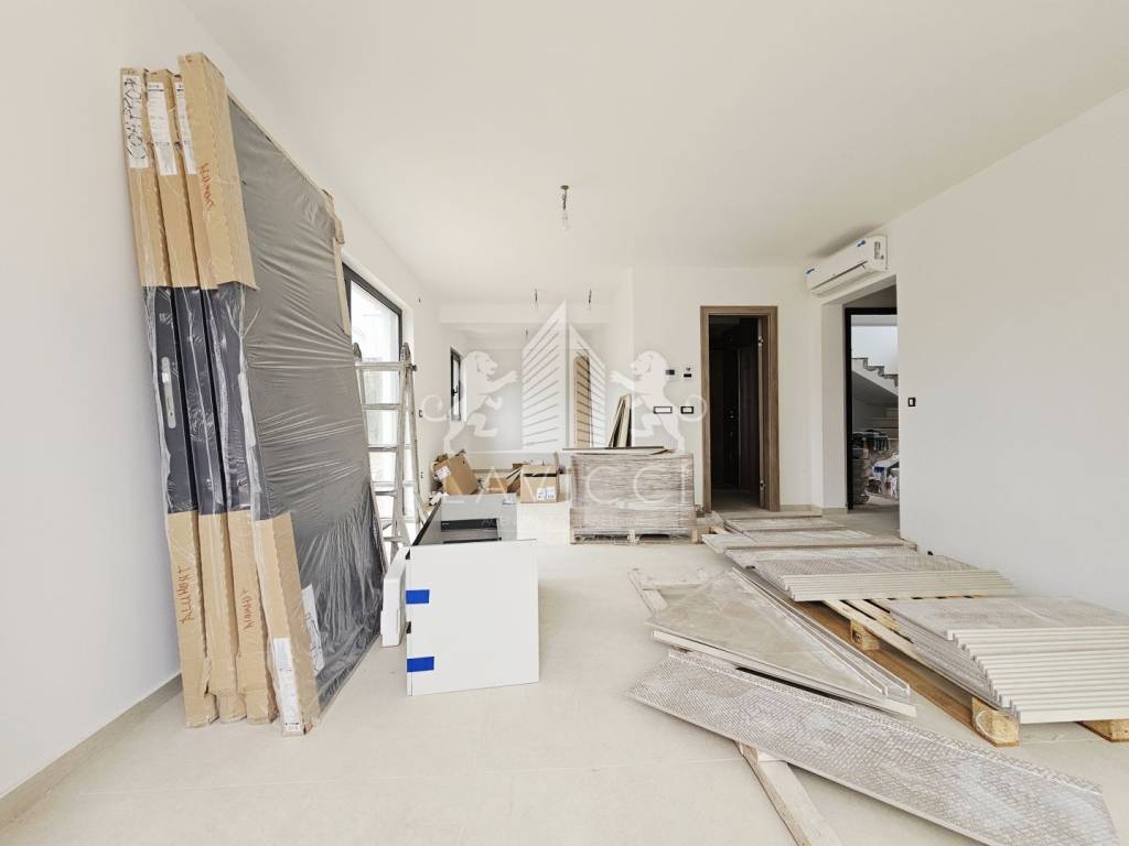 A luxurious two-story apartment in a top-quality new building is for sale, located in Sukošan in Zadar County, ideal for a comfortable vacation or year-round living, located only 350 m from the sea and a beautiful beach.