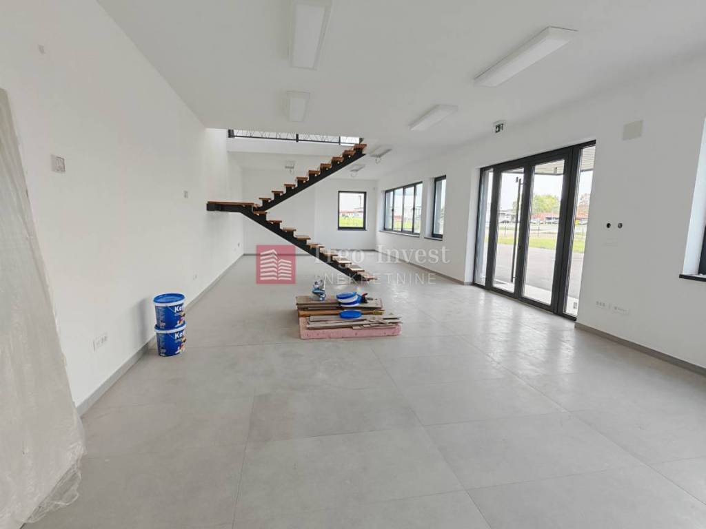 Poslovna zgrada smještena na odličnoj lokaciji u neposrednoj blizini zapadnog ulaza/izlaza na auto cestu A3 Zagreb-Lipovac-cca 300 m. Sastoji se od skladišno/proizvodnog prostora površine 876,00 m2 ( 20,00 x 43,80) te izložbeno/uredski prostor na dvije etaže 246 m2, ukupno 1.122,00 m2 ,koji sadrži garderobu, sanitarne čvorove , ured. Manipulativna površina (asfalt)- 1.850,00 m2 Ukupna veličina parcele-4718,00 m2