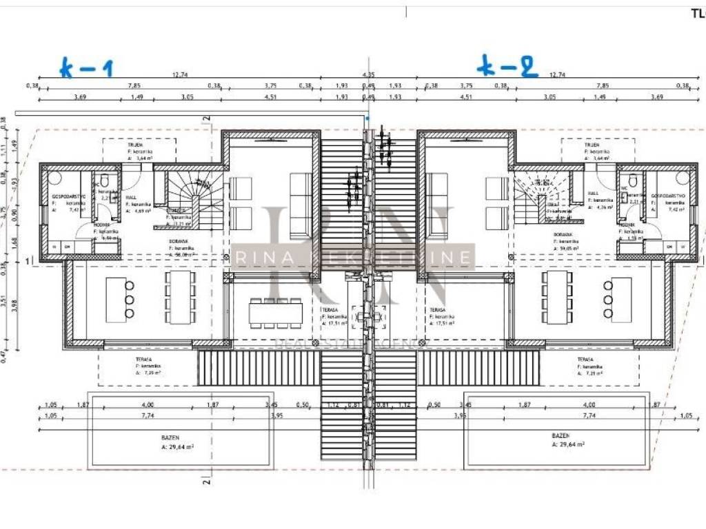 The house is constructed using high-quality materials, in energy class A+. It features aluminum windows, insect screens, electric roller shutters, underfloor heating / heat pump, air conditioning / cooling in every room, and security doors.