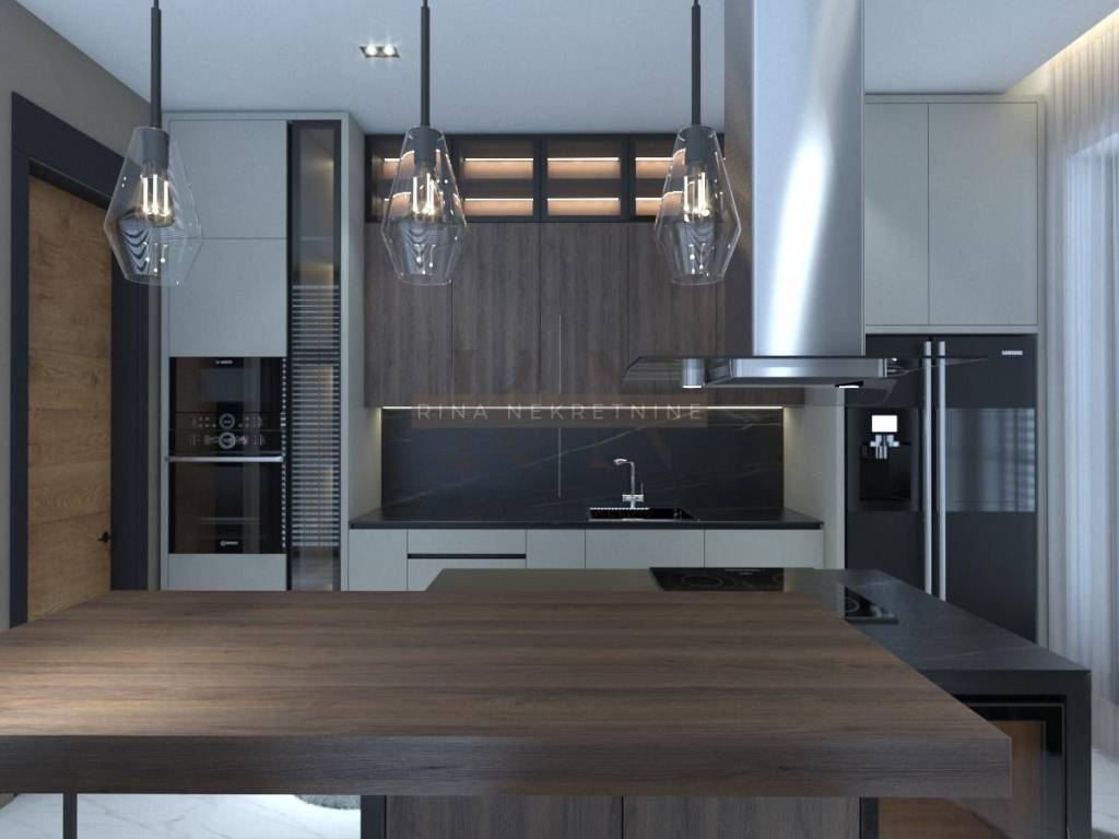 - GROUND FLOOR with a spacious open space living room that has a semi-separate kitchen with a dining room and a separate dining area. All rooms are surrounded by floor-to-ceiling Schuco triple-layer glass sliding walls, with automatic doors that open and close with a click, providing a continuous connection with the outside space. There is also a guest bathroom on the same floor.