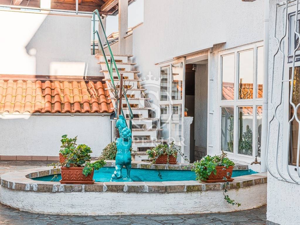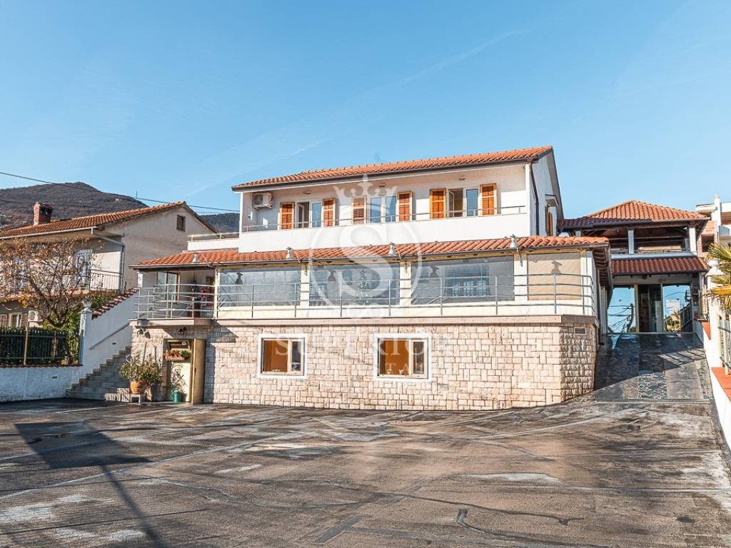 For sale is a spacious detached residential-commercial house with a gross area of 542 m², situated on a 1,200 m² plot in a quiet part of Pobri, just above Opatija. The property is well maintained and adapted, with the last renovation in 2018, south-facing and offering an open sea view.