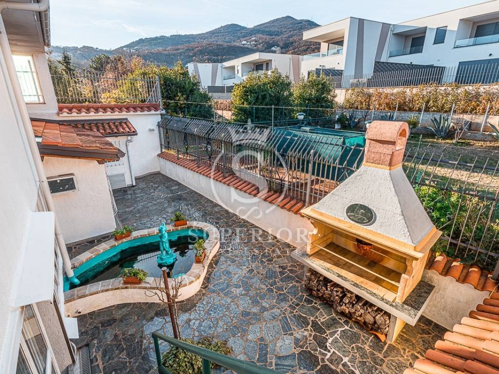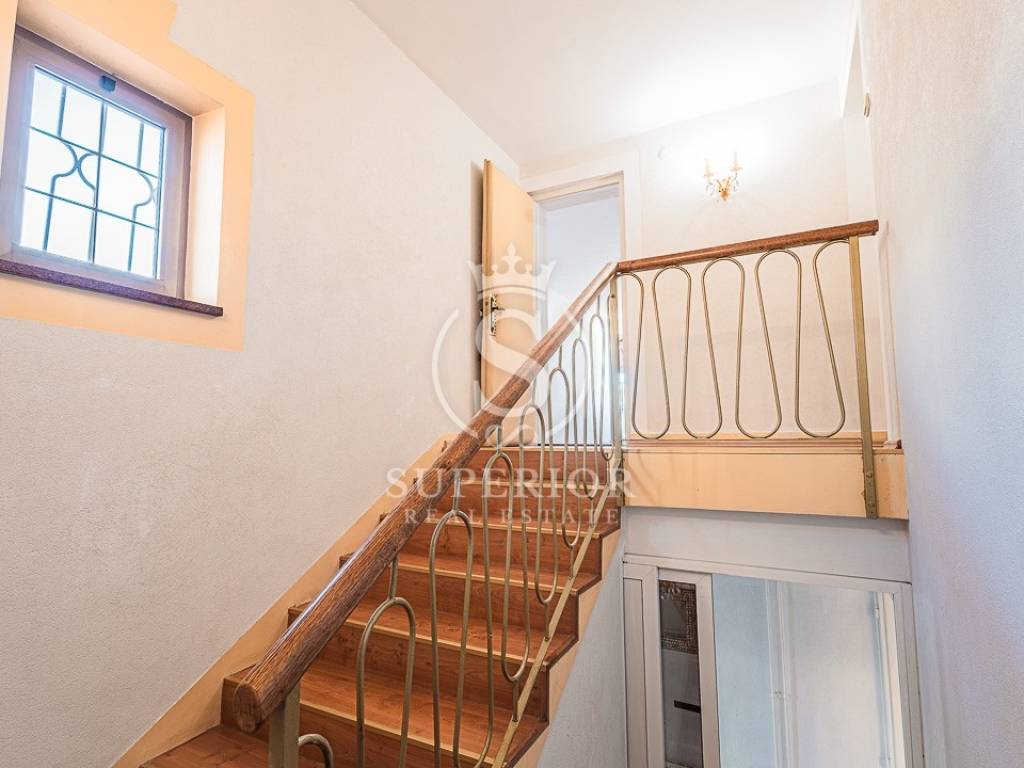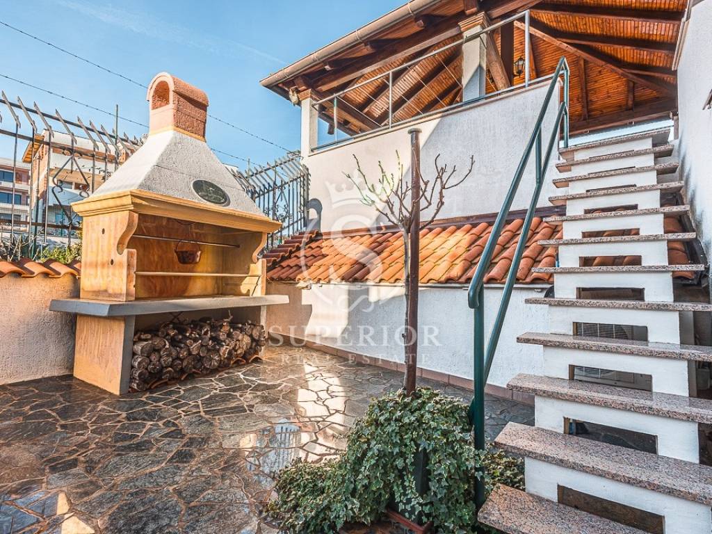 An external staircase connects the terrace with the rear garden, ideal for summer gatherings.