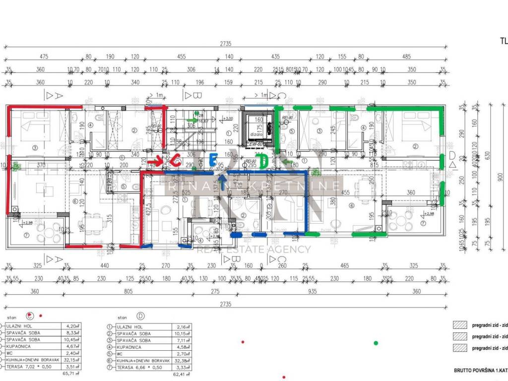 ISTRIA – POREČ – TAR An attractive, airy and sunny apartment is for sale, located just 7 km from Poreč, in a modern building with a ground floor and three floors, equipped with an elevator for additional comfort and convenience. Apartment – 65.71 m² (second floor) The apartment consists of: • Entrance area • Spacious open-space living room with kitchen and dining room, with access to a beautiful loggia • Two bedrooms • Bathroom • Separate toilet