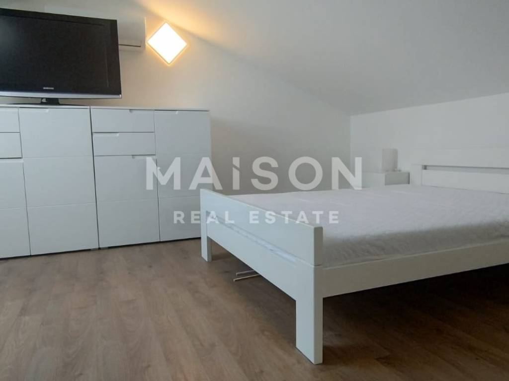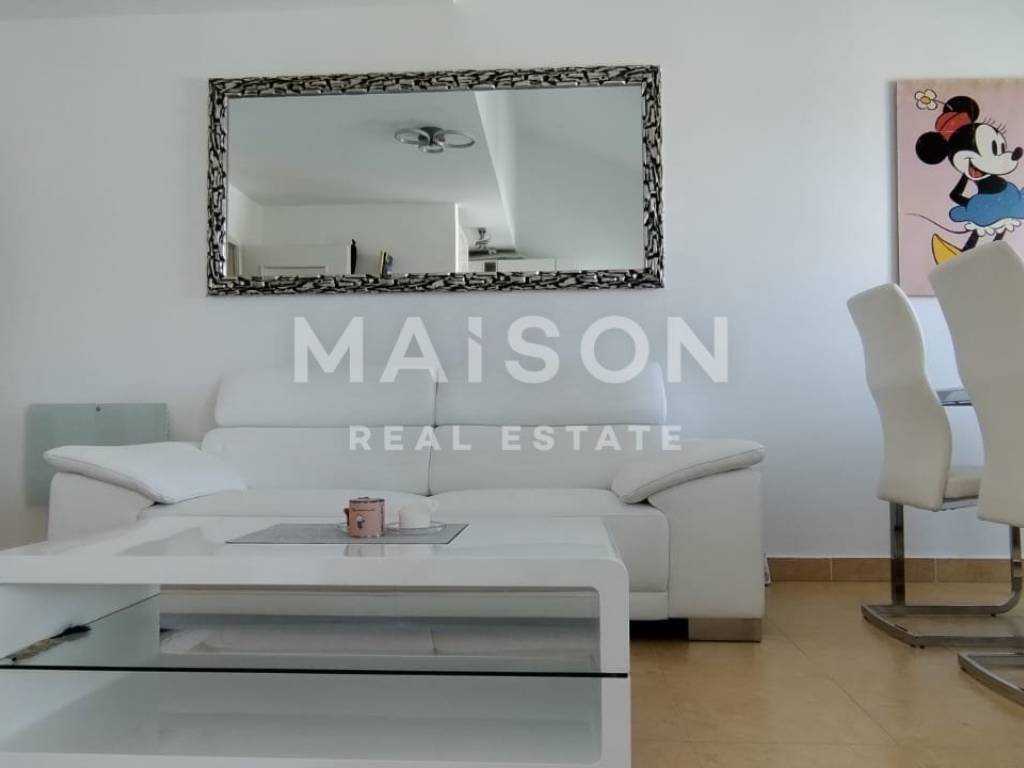In Malinska, a beautifully furnished two-story apartment is for sale, ideal for family living or as an investment for tourist rental. The first floor of this apartment includes two comfortable bedrooms, a bathroom, an additional WC, a spacious kitchen connected to the dining area, and a living room with access to a loggia, offering a beautiful sea view and creating the perfect setting for relaxation. The upper floor features another large bedroom, providing additional space and privacy. The apartment is fully furnished and equipped with attention to detail, creating a cozy atmosphere suitable for long-term living or tourist rental. The price includes a storage room of 16 m² and a parking space of 21 m², which further increases the practicality and value of the property. This property represents an excellent opportunity for those seeking a quality space in Malinska, whether for personal use or as a long-term investment.