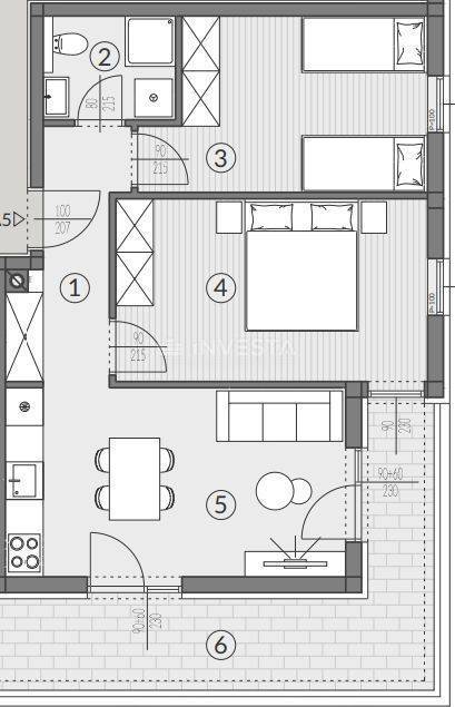 Apartments will be equipped with PVC windows, an air conditioning unit in the living room, bathrooms, and there will be an option to choose from 4 different ceramic tile models.
