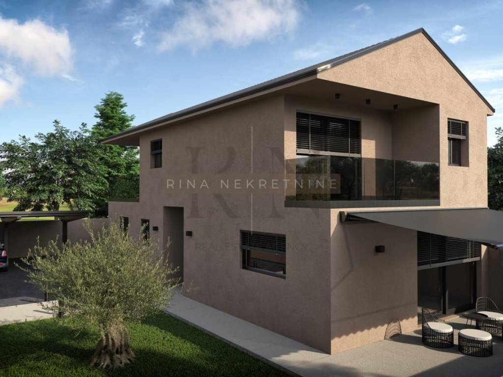 For sale is a house under construction located in a quiet and green area of Istria, near Sveti Lovreč and 15 km from Poreč and beaches. This modern, detached house offers contemporary design, high-quality construction, and luxury features, ideal for family living, vacation, or rental investment.