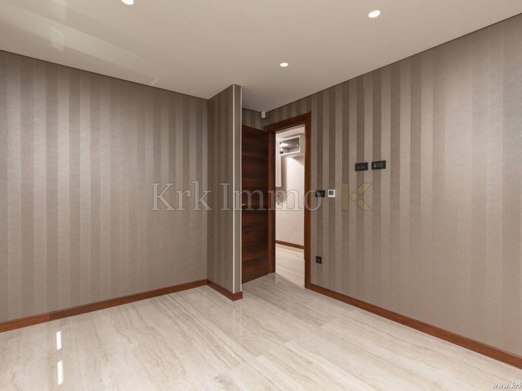 It is equipped with first-class equipment: aluminum carpentry, glass railings combined with natural stone, 1st-class polished ceramic combined with glass stair railings, ventilated Travertin stone facade, luxurious attractive wallpaper, top-quality bathroom furniture and sanitary ware, and carefully selected lighting fixtures. These are just some of the most significant features of the apartment that indicate the quality of the equipment and construction.